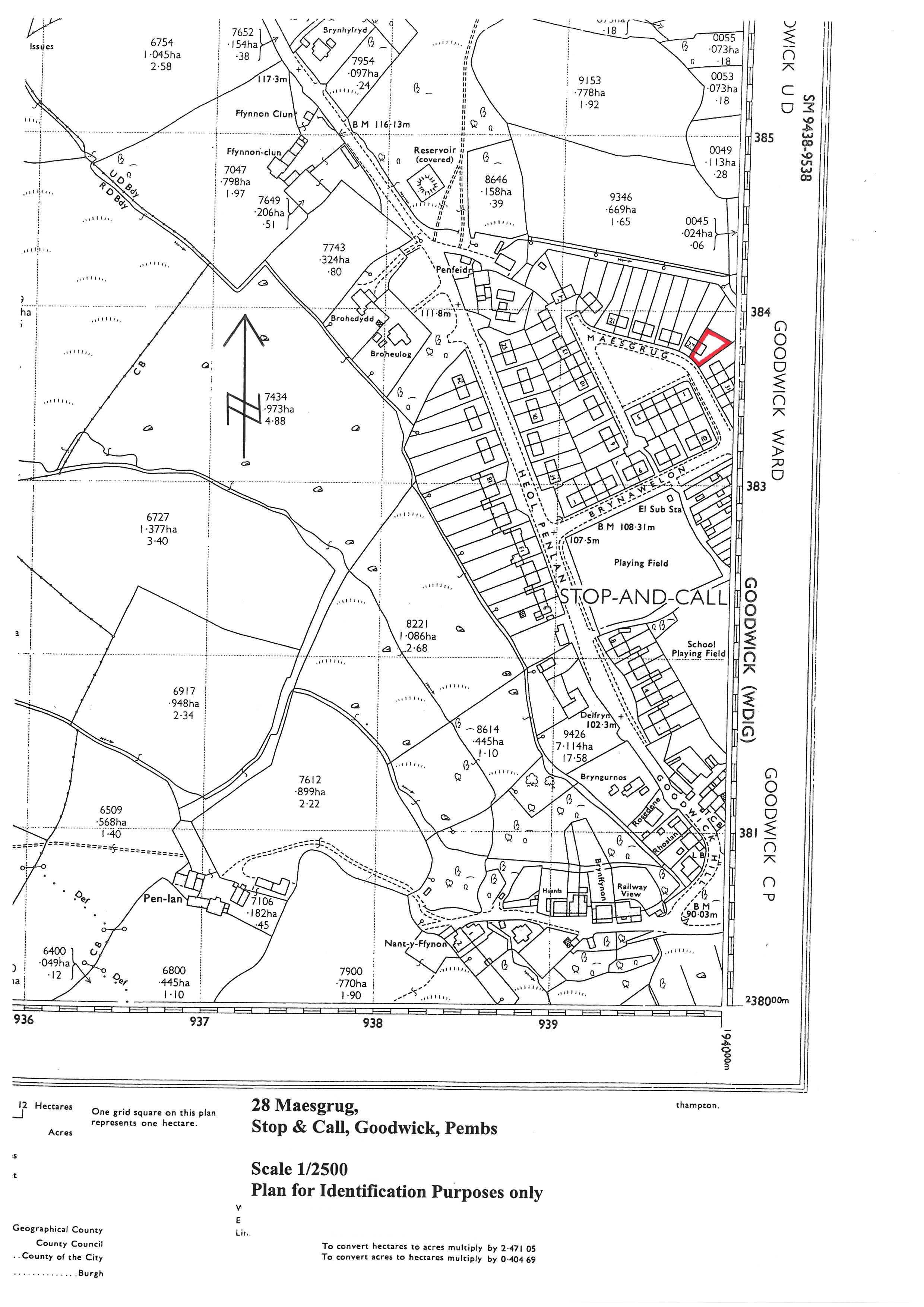 There is a small Lawned Garden to the fore with Flowering Shrubs. Double wrought iron gates lead off Maesgrug to a concrete hardstanding which allows for Off Road Parking for 2/3 Vehicles. There is a concrete and paved path surround to the Property and to the rear is a Paved Patio area together with a sizeable Lawned Garden with Flowering Shrubs, a Bay Tree, Apple Tree, Fuschias and a Conifer Bush. 2 Outside Sensor Lights and an Outside Water Tap. The approximate boundaries of the Property are edged in red on the attached Plan to the Scale of 1/2500.