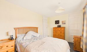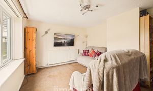 With fitted carpet, ceiling light and 2 wall lights, double panelled radiator, uPVC double glazed window with vertical blinds, Worcester central heating thermostat control, mains smoke detector, 6 power points and door to:-