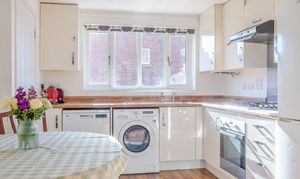Inside, the home features a bright and spacious open-plan kitchen and sitting room, perfect for entertaining or relaxing. Both bedrooms benefit from built-in wardrobes, providing ample storage space.