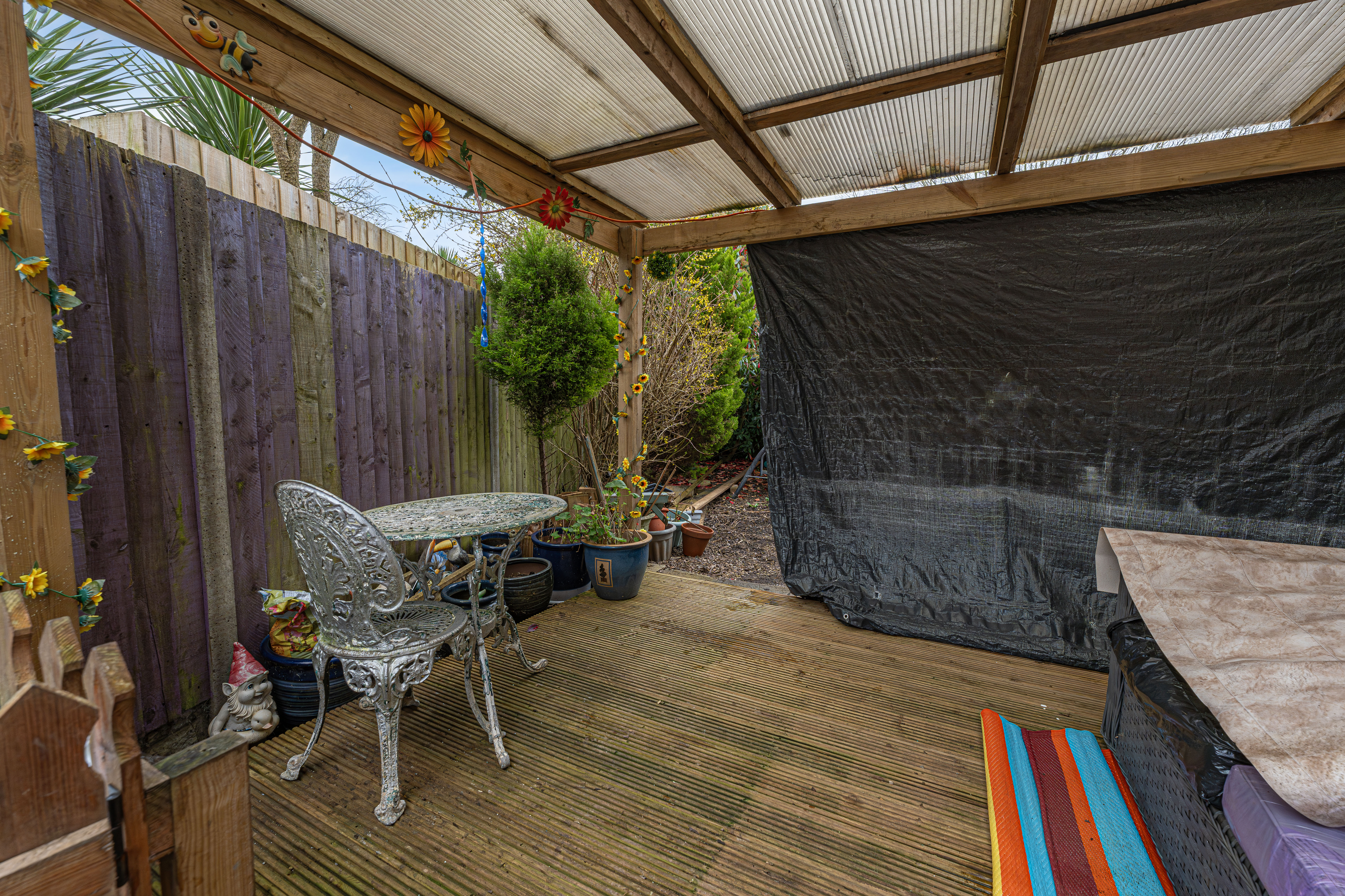 Stepping outside we have the rear garden, which features a spacious grass lawn, adorned with mature shrubs and trees to fully enclose this lovely outdoor space, which is ideal for relaxing in the fresh air, and welcoming visitors. The garden also showcases a summerhouse offering great potential to residents, as well as a sheltered wooden deck, which is optimal for a outdoor lounge or al-fresco dining area. Residents can also make use of a large driveway to the front of the house, with space to park at least 3 vehicles.