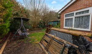 We enter this home at the side via the screened porch, where we can find a spacious living room, which presents a great space for relaxing and entertaining. A further reception room beyond in the bright conservatory beyond, which is flooded by natural light and offers a doorway directly into the garden. On the opposite side of the house we have the kitchen, featuring plenty of storage options and room for appliances, whilst sitting adjacent to the formal dining room. Additional storage is available with a large fitted closet from the dining room, and a cloakroom cupboard in the hallway.