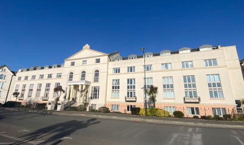 The two double bedrooms are at the side, both with doors out to a balcony with superb sea views across to the sea wall to Teignmouth, one also with a window to the front and the other with a window to the rear with a sea view towards Exmouth. The main bedroom has a range of built in dark wood wardrobes, bedside drawers and shelves.
