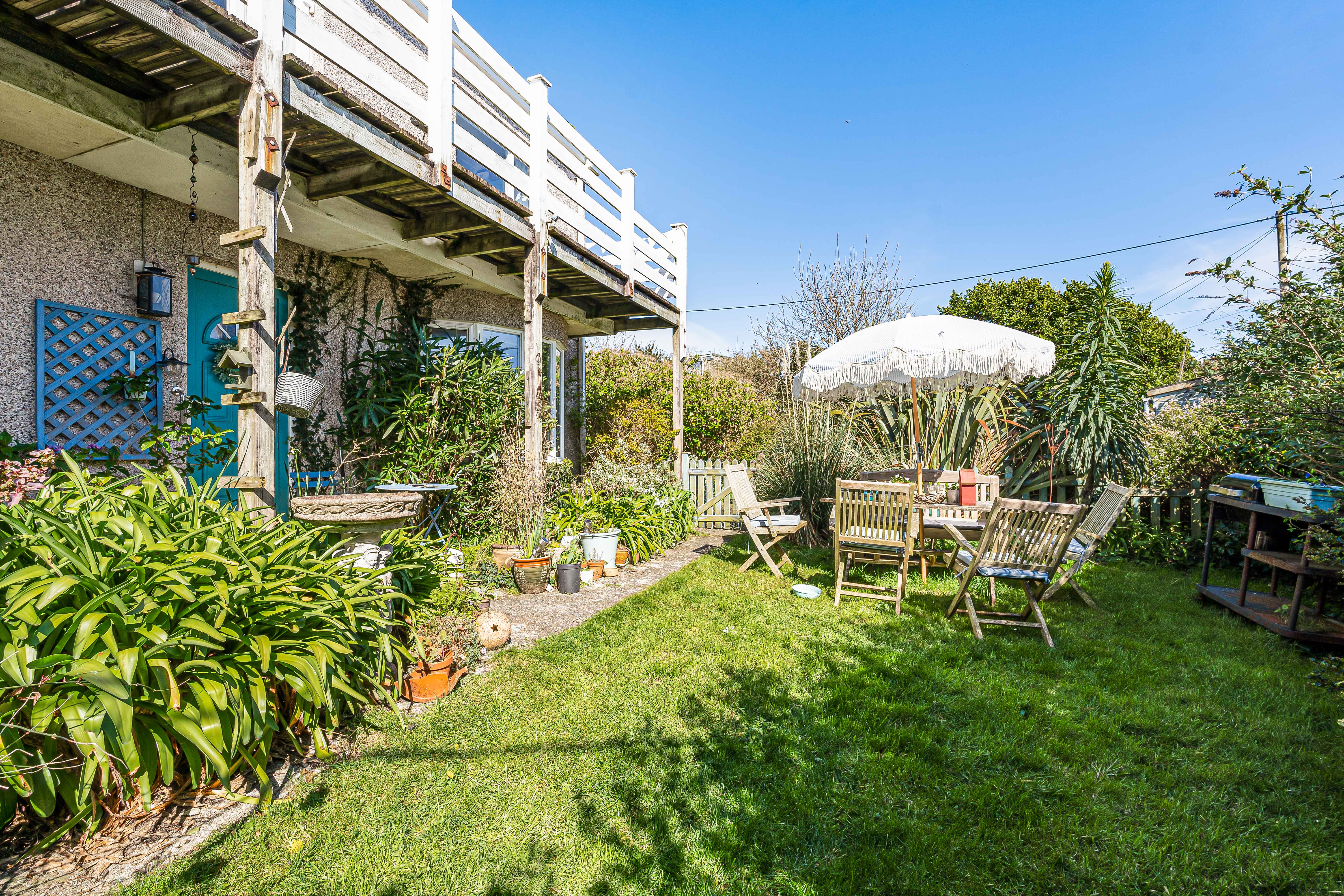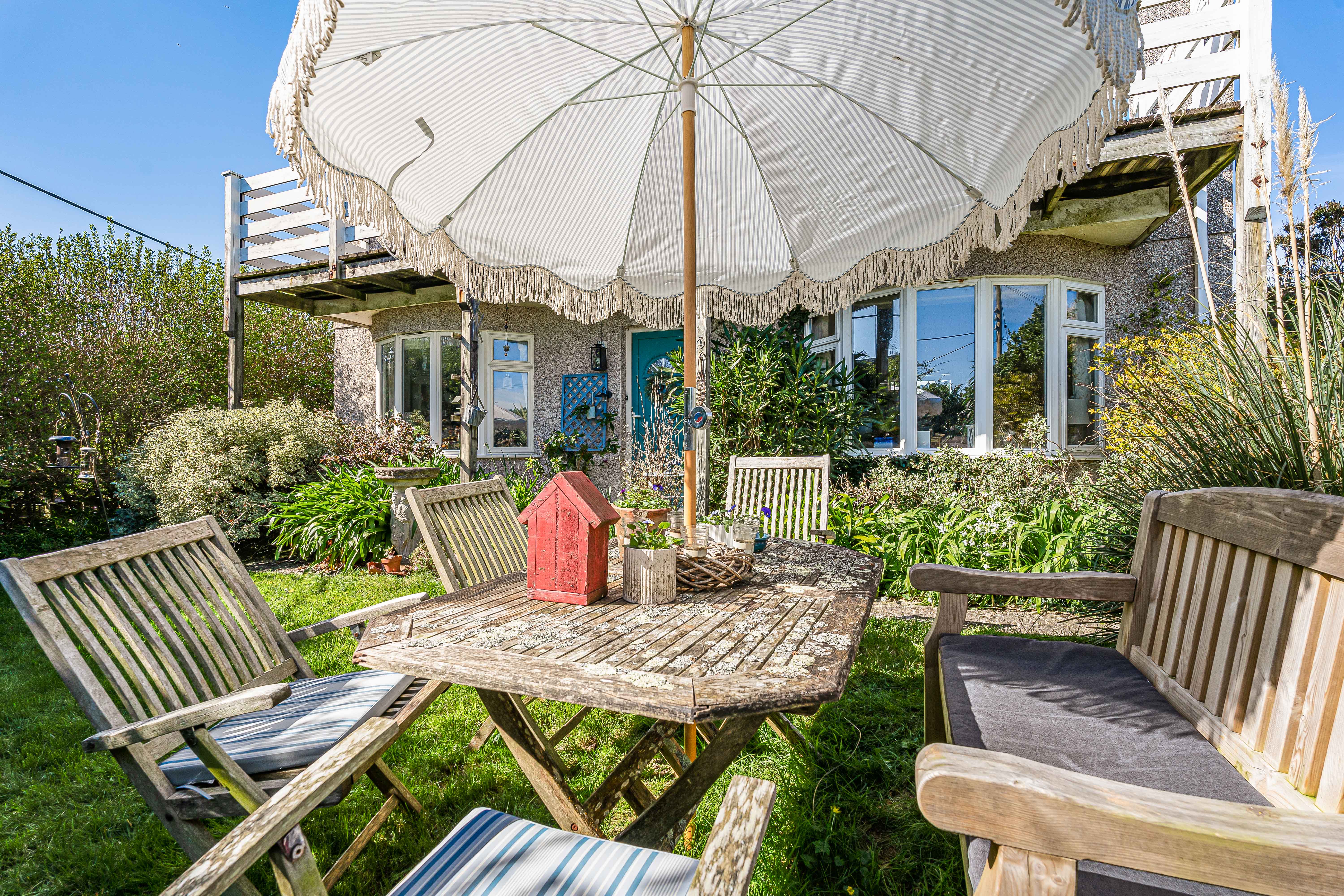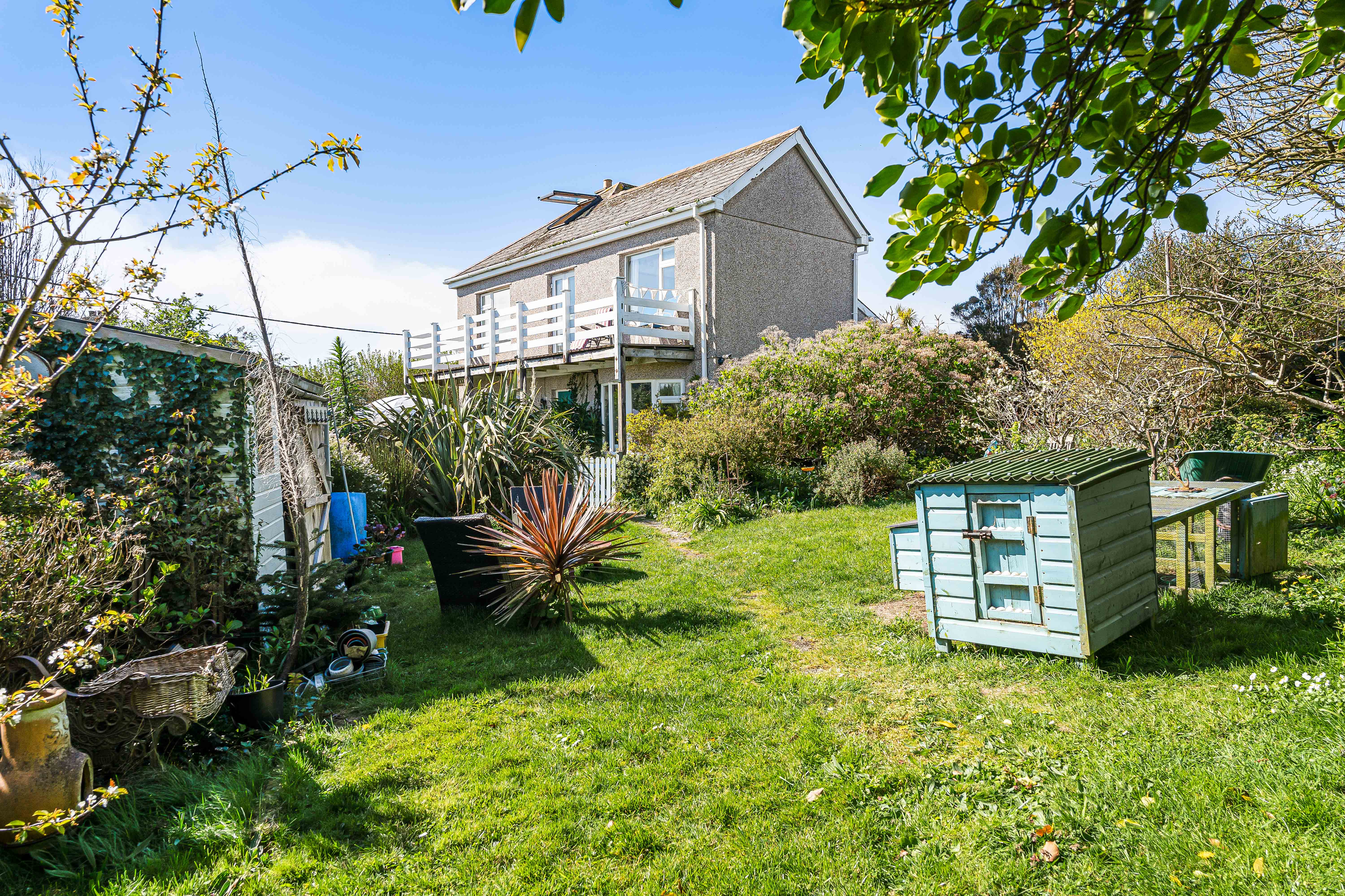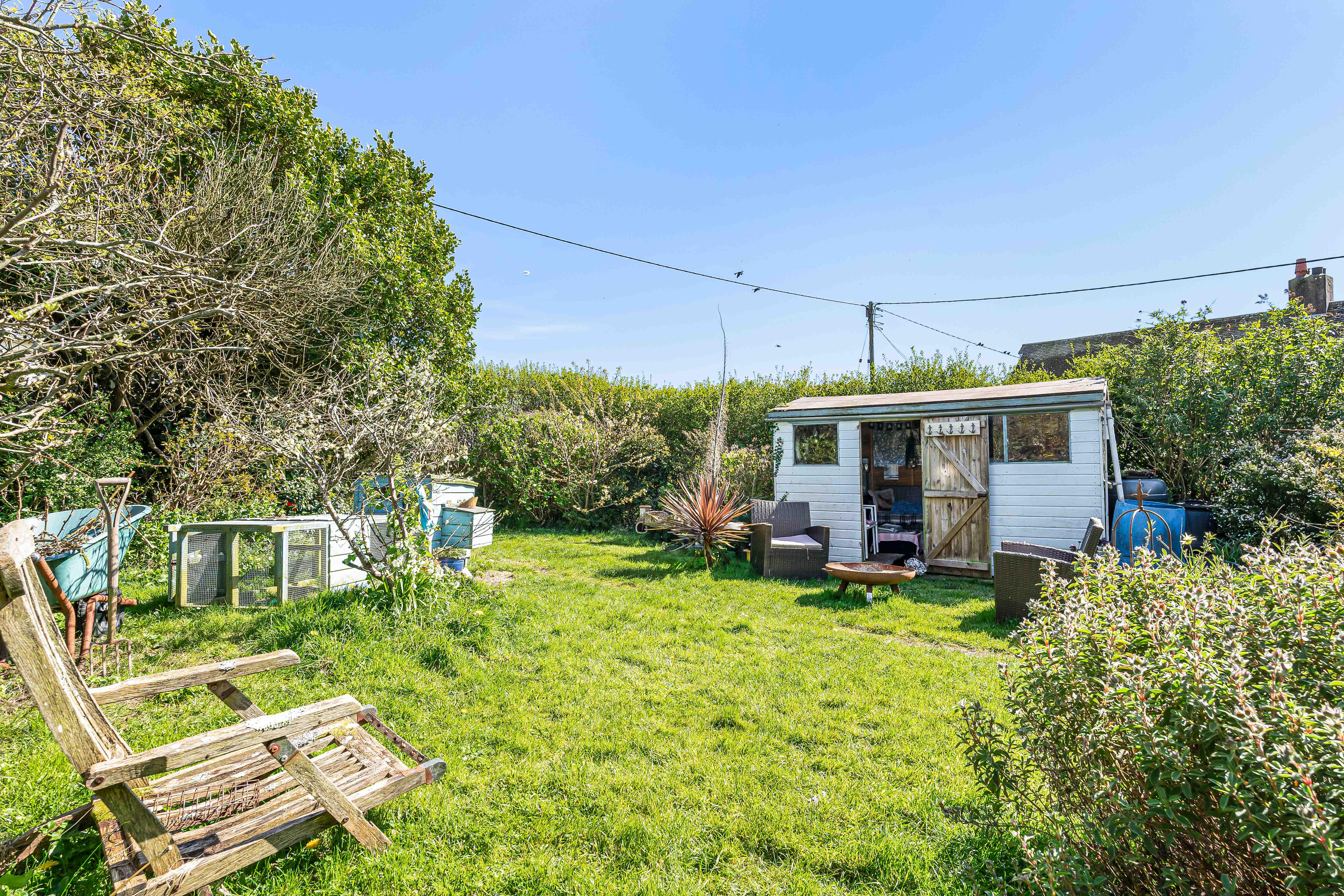 There are pathway leading to the front and side garden which are laid to lawn and completely private with established borders. Behind the garage there is a gravelled area with various fruit trees. Pedestrian garden gate leads to Pentille green and coast path.