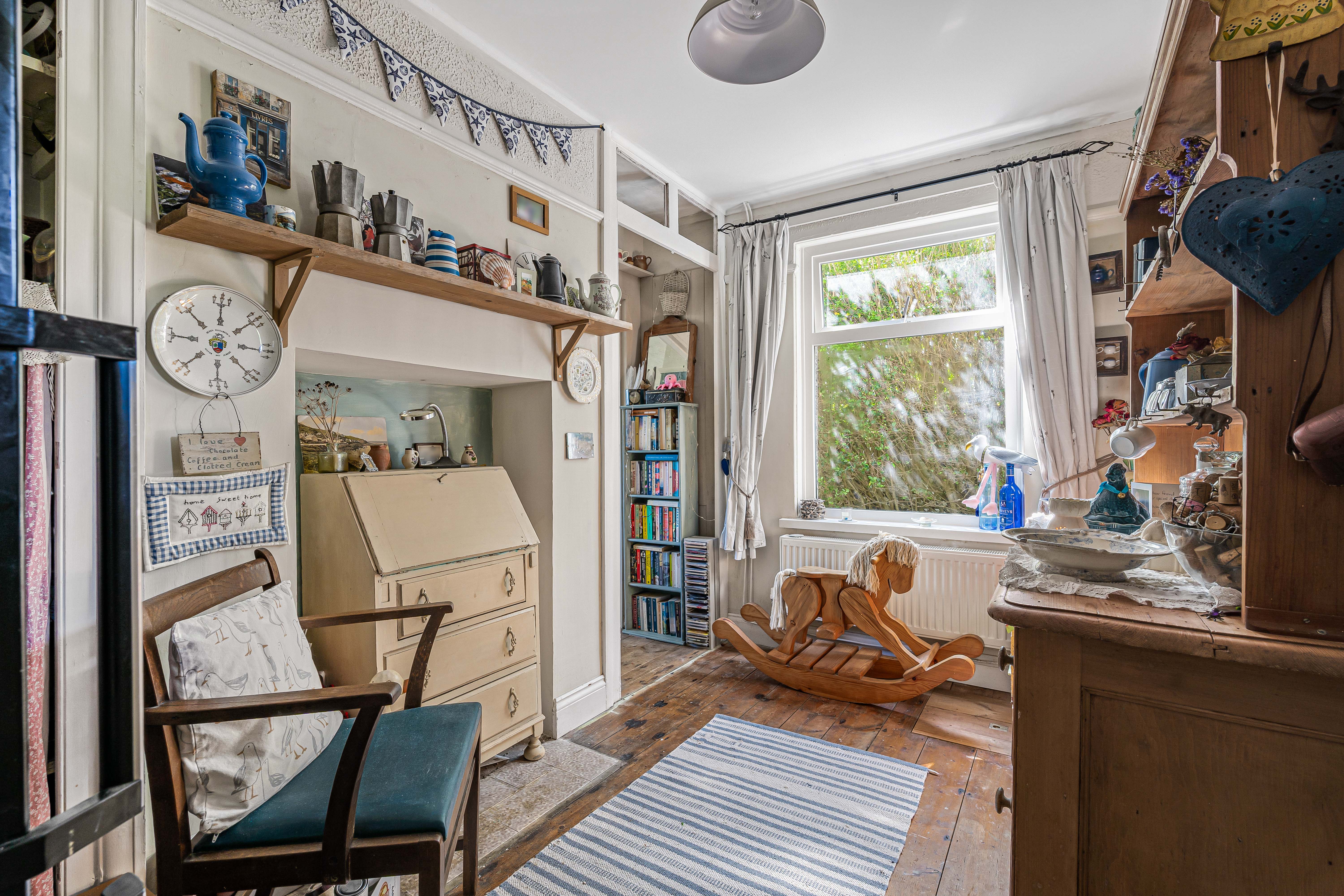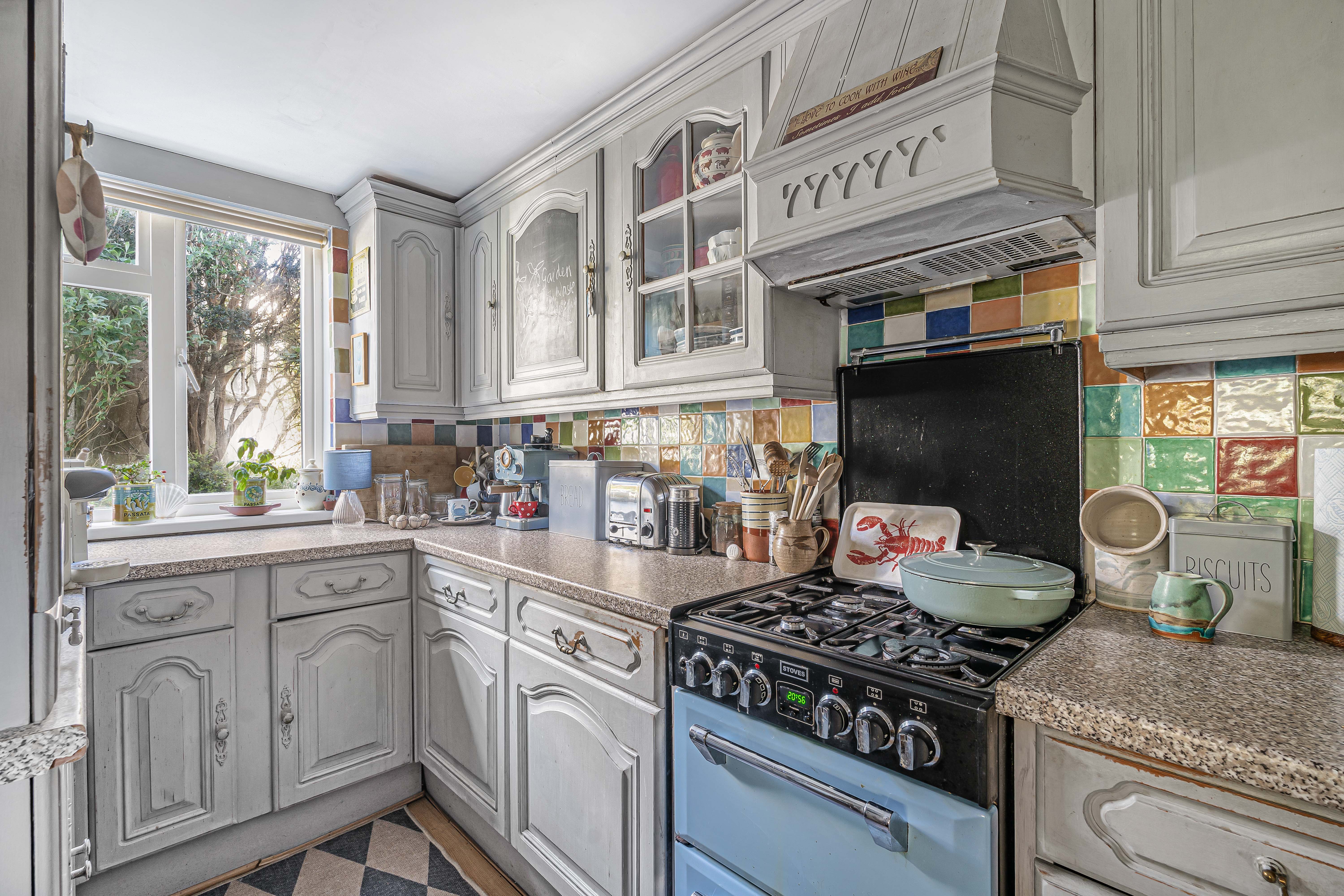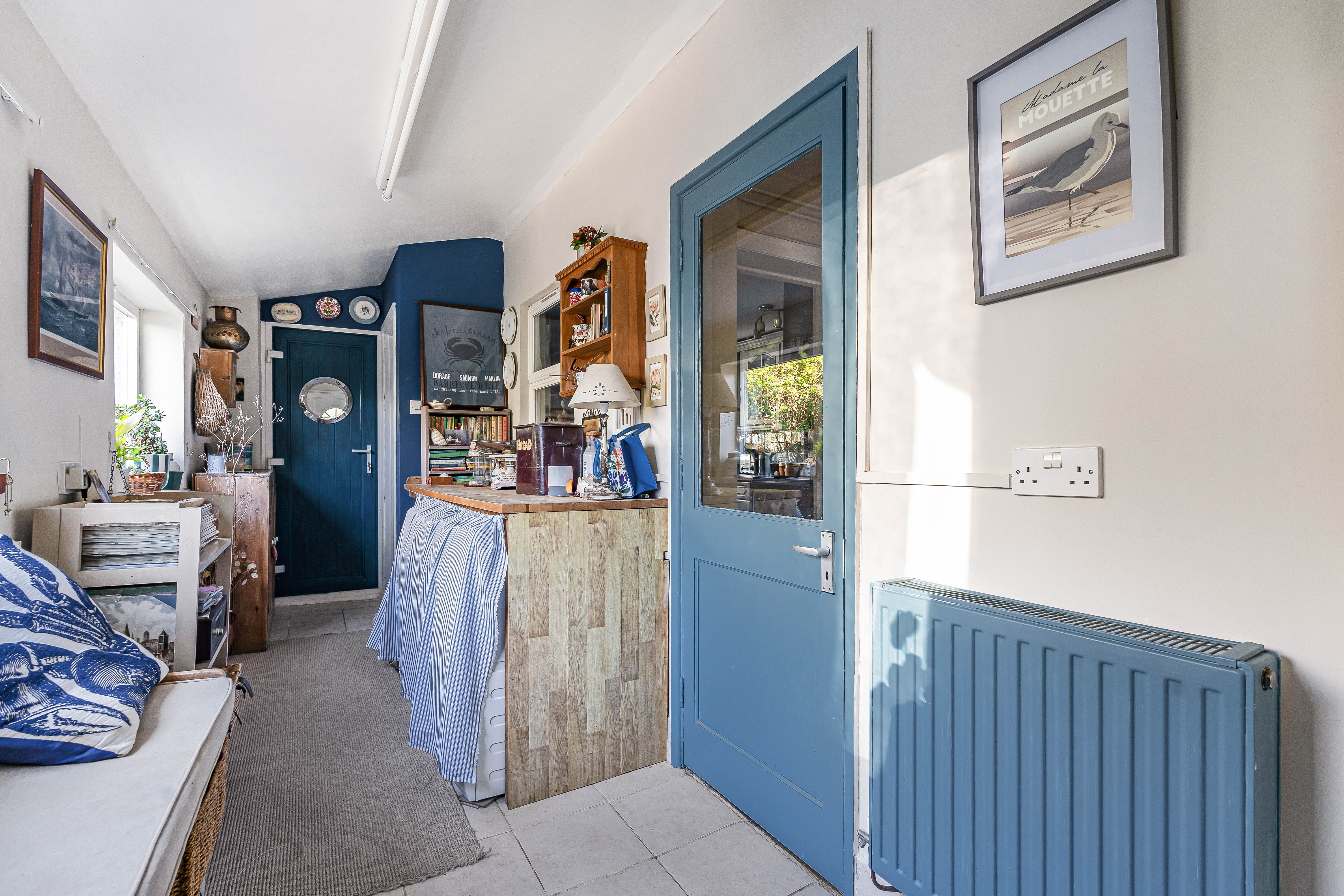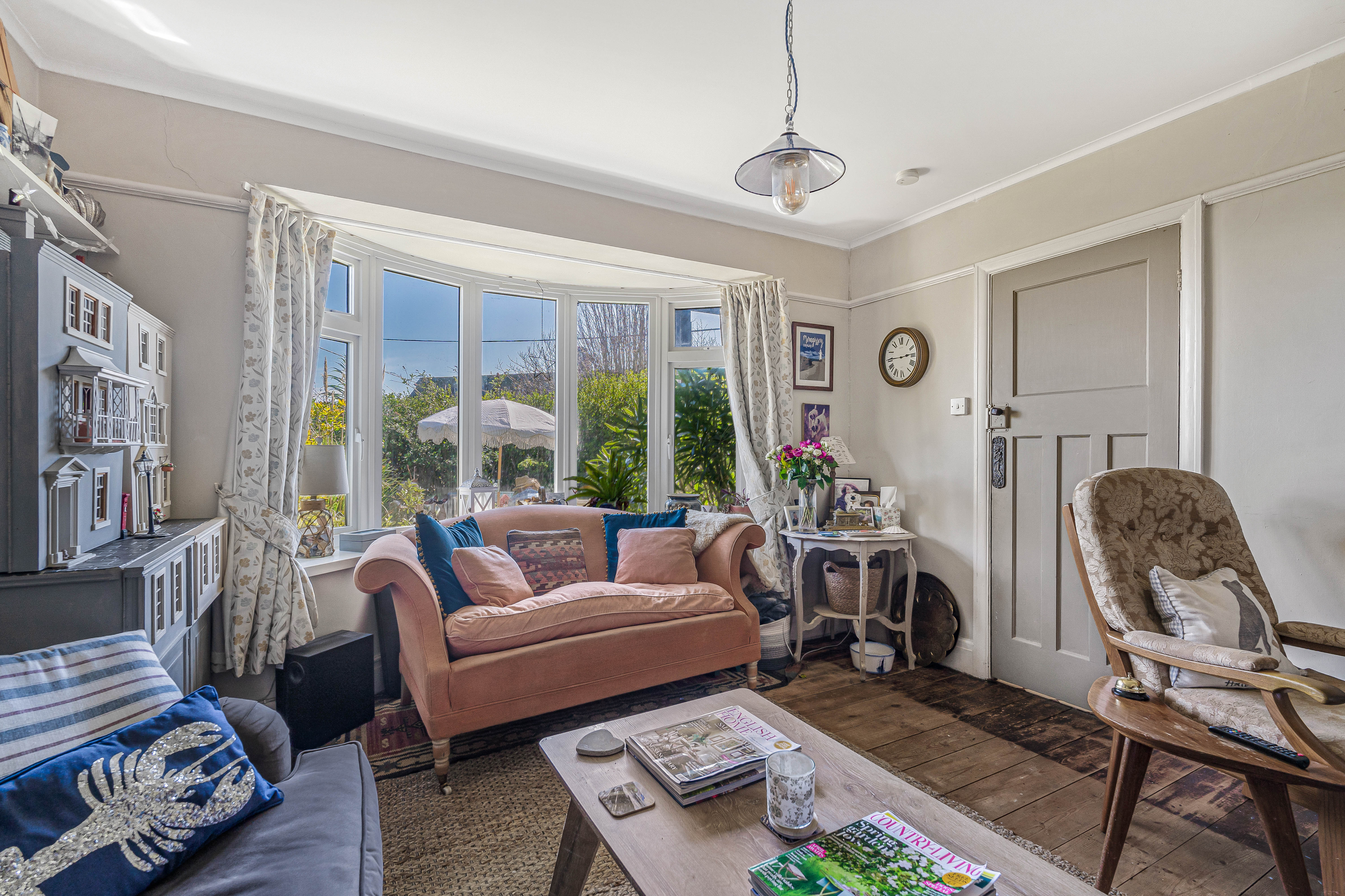 There are pathway leading to the front and side garden which are laid to lawn and completely private with established borders. Behind the garage there is a gravelled area with various fruit trees. Pedestrian garden gate leads to Pentille green and coast path.