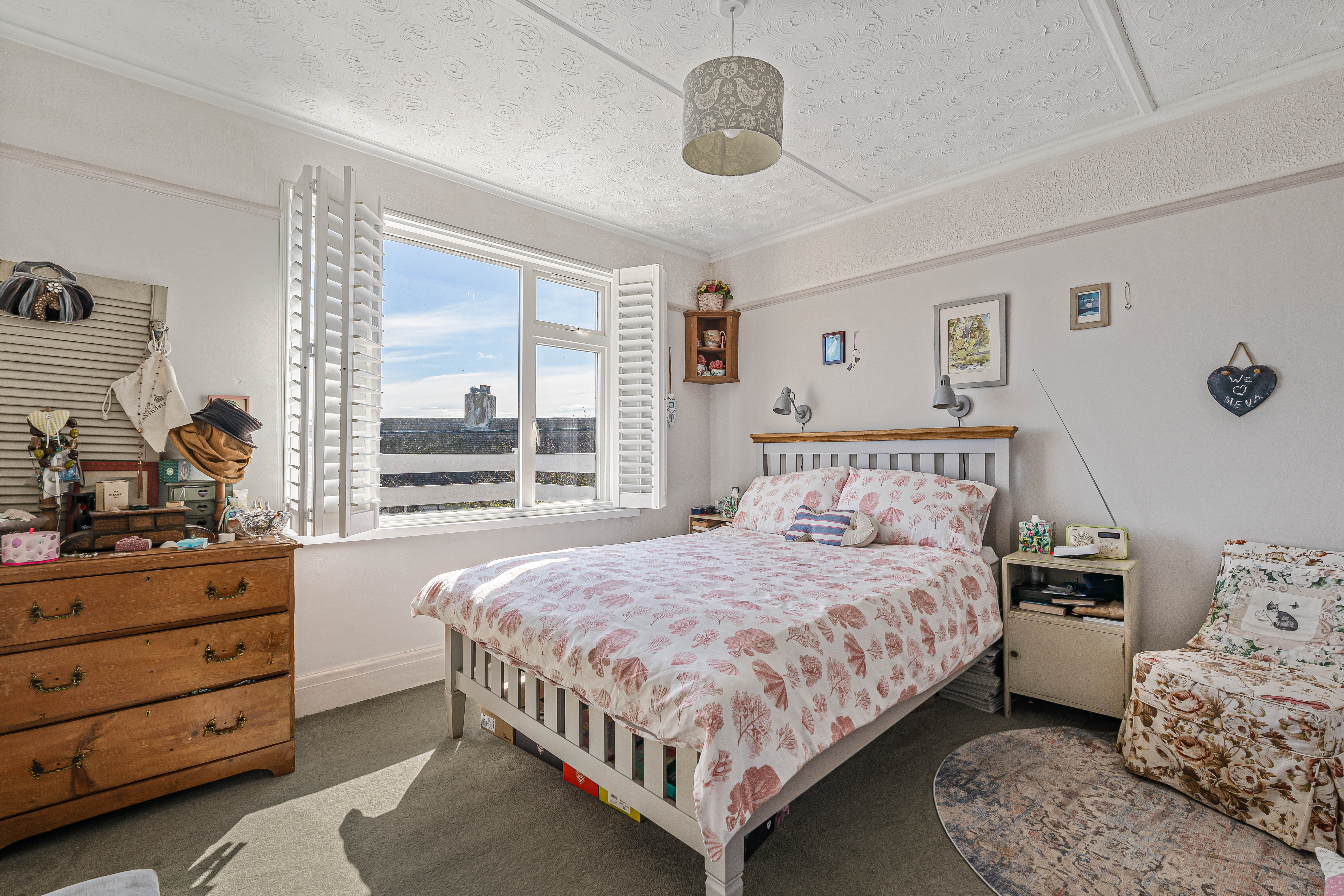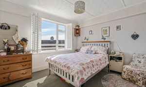 Bedroom three has French doors leading out to the full-length balcony enjoying superb views across an open park area and sea views.
