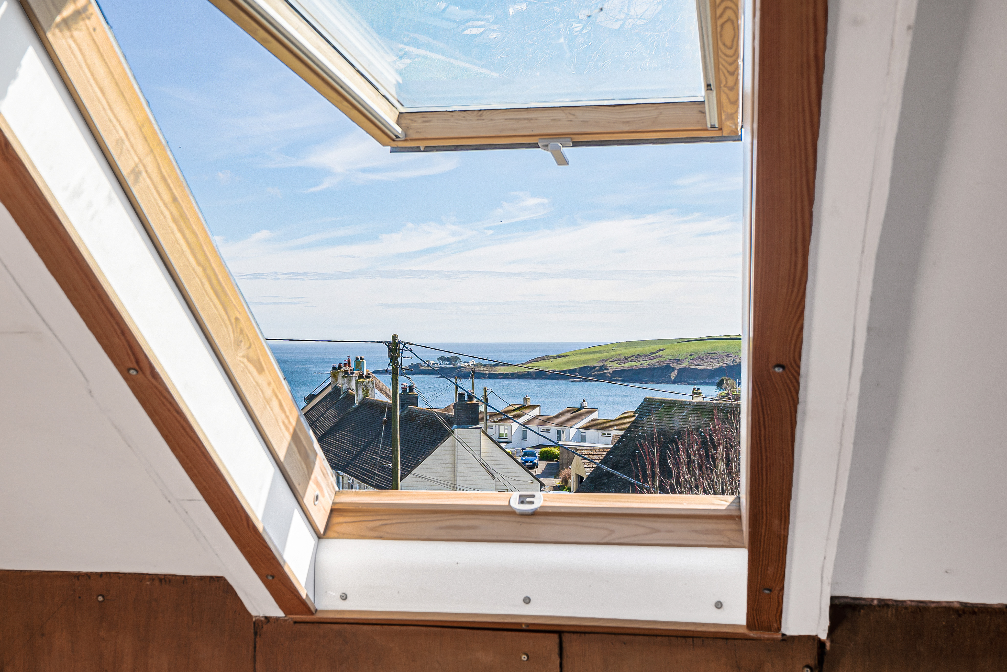 You have a landing with space saving staircase to the loft room which has been boarded and has a Velux roof light, which enjoys incredible elevated sea views. Which could be used as study, hobbies room or additional storage