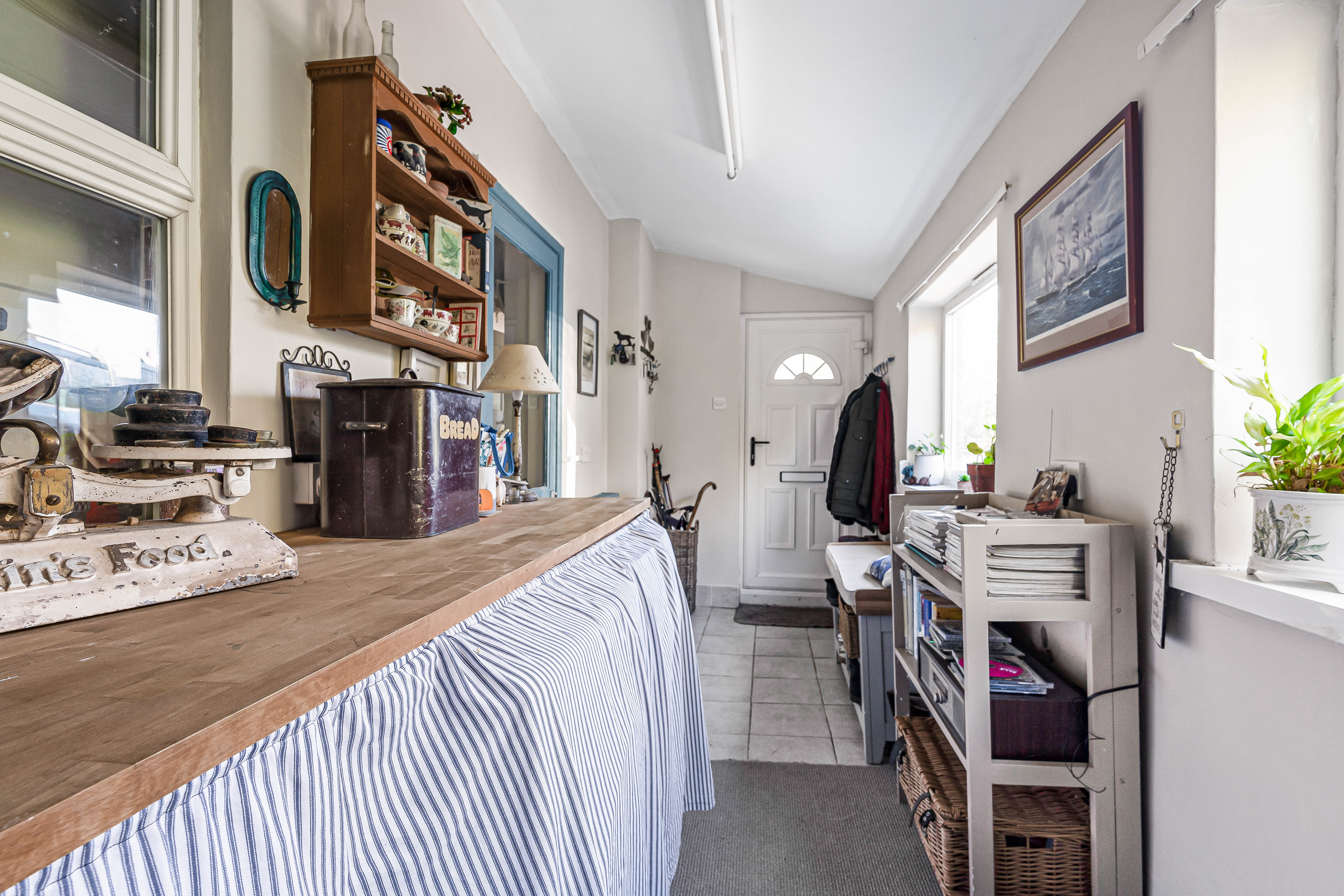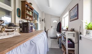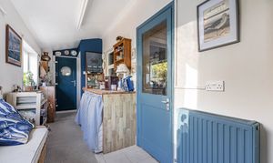 Rear entrance porch/utility with a door and two windows to the rear, ceramic tiled floor, door to the side garden. Door to a handy cloakroom.