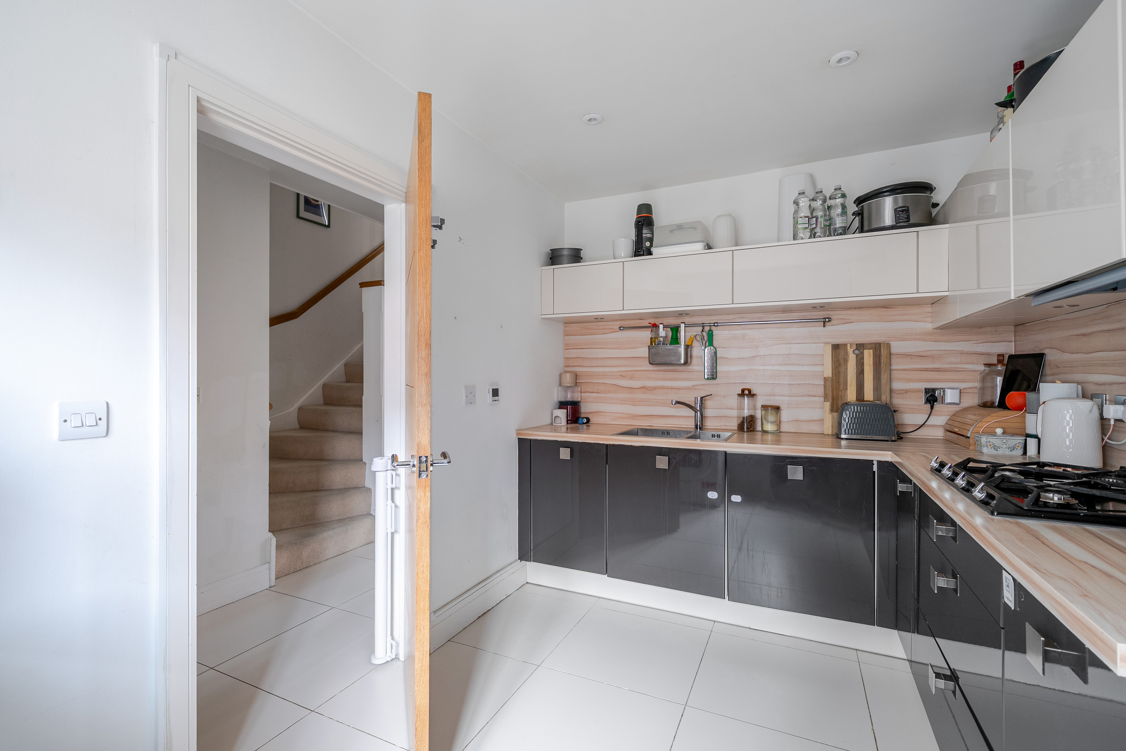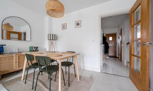 On the ground floor, an entrance hall provides access to a useful cloakroom and a fitted kitchen. To the rear, there is a bright and spacious sitting/dining room, with French doors opening out onto the garden, creating an ideal space for both relaxing and entertaining.
