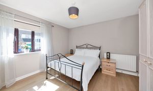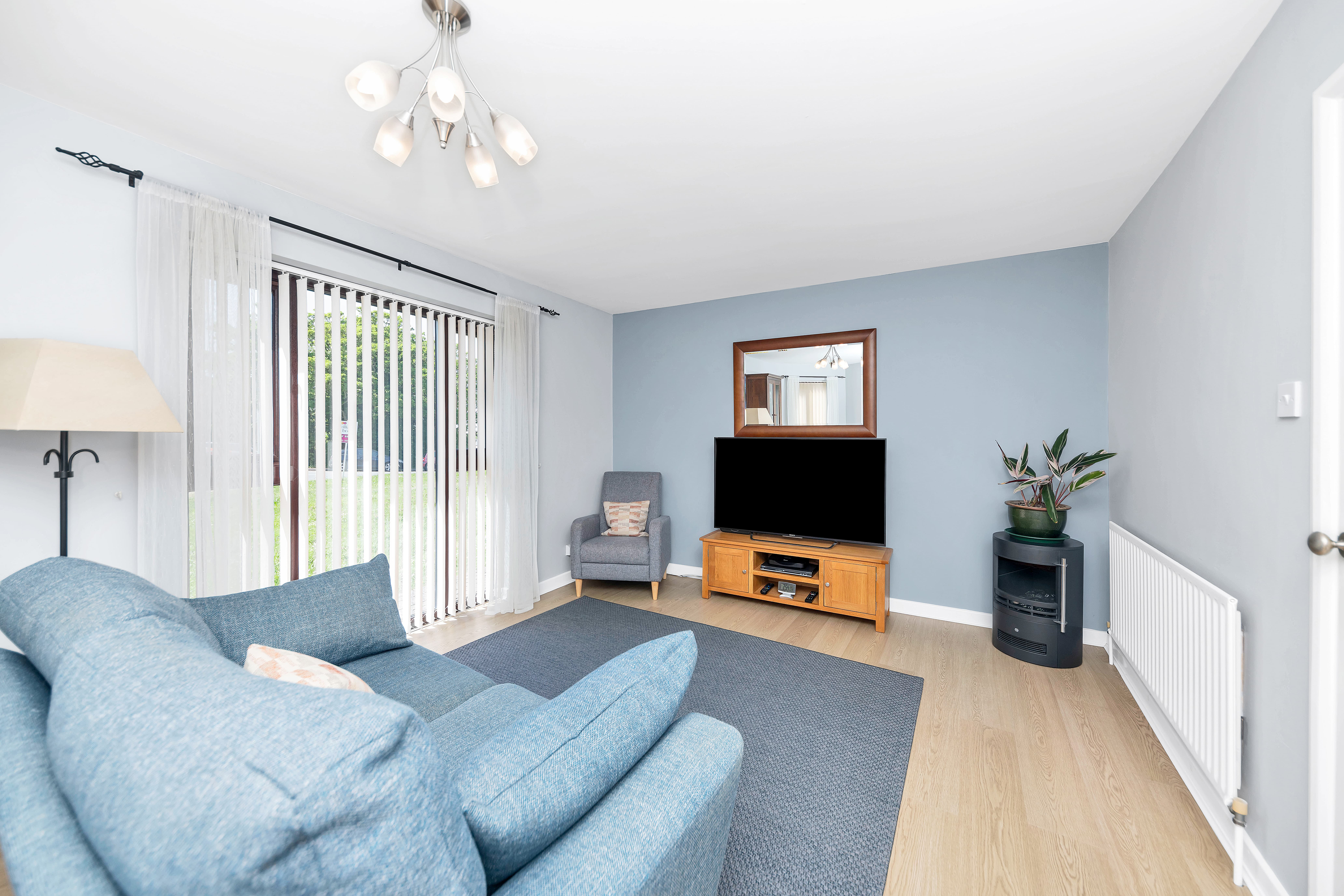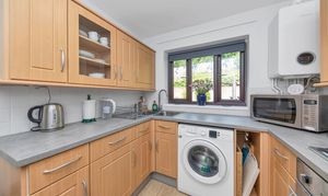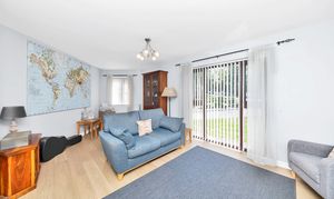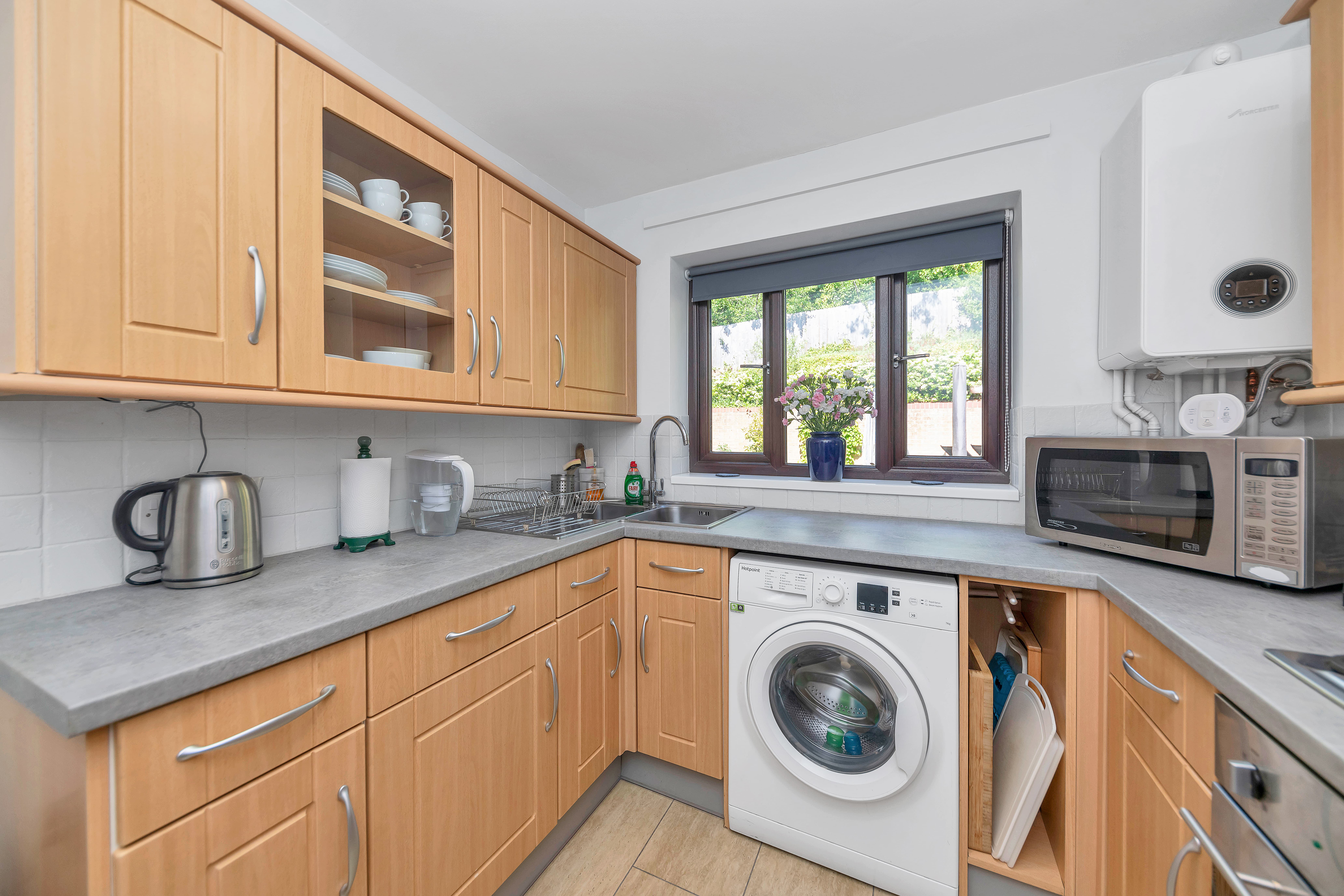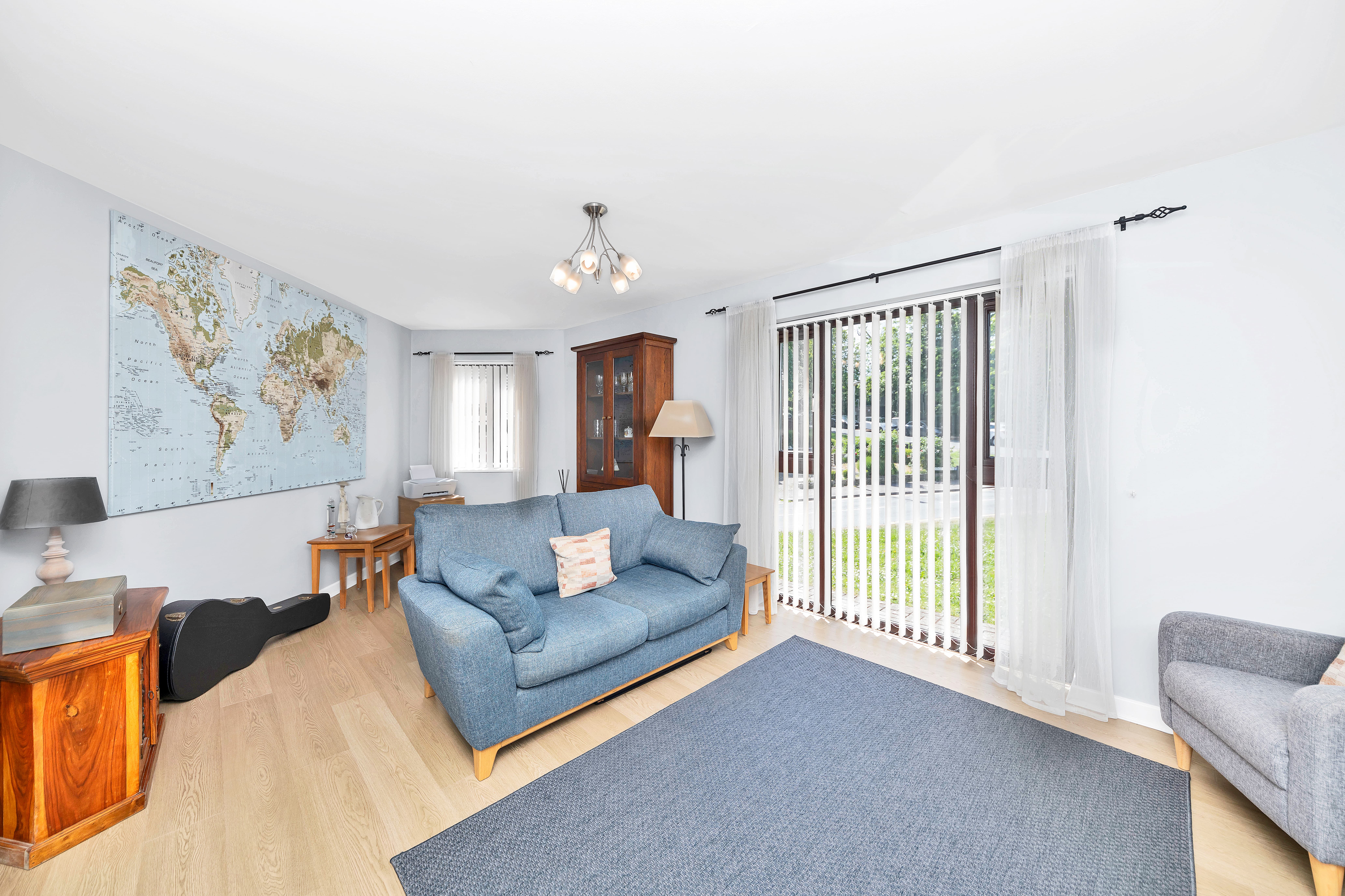 This ground-floor flat belongs to an attractive and well-maintained development, just a short walk to the town centre and excellent local amenities. Upon stepping inside, the entrance hallway is bright and welcoming, with excellent integrated storage, pendant lighting, room for furniture, and doors to the entire accommodation.