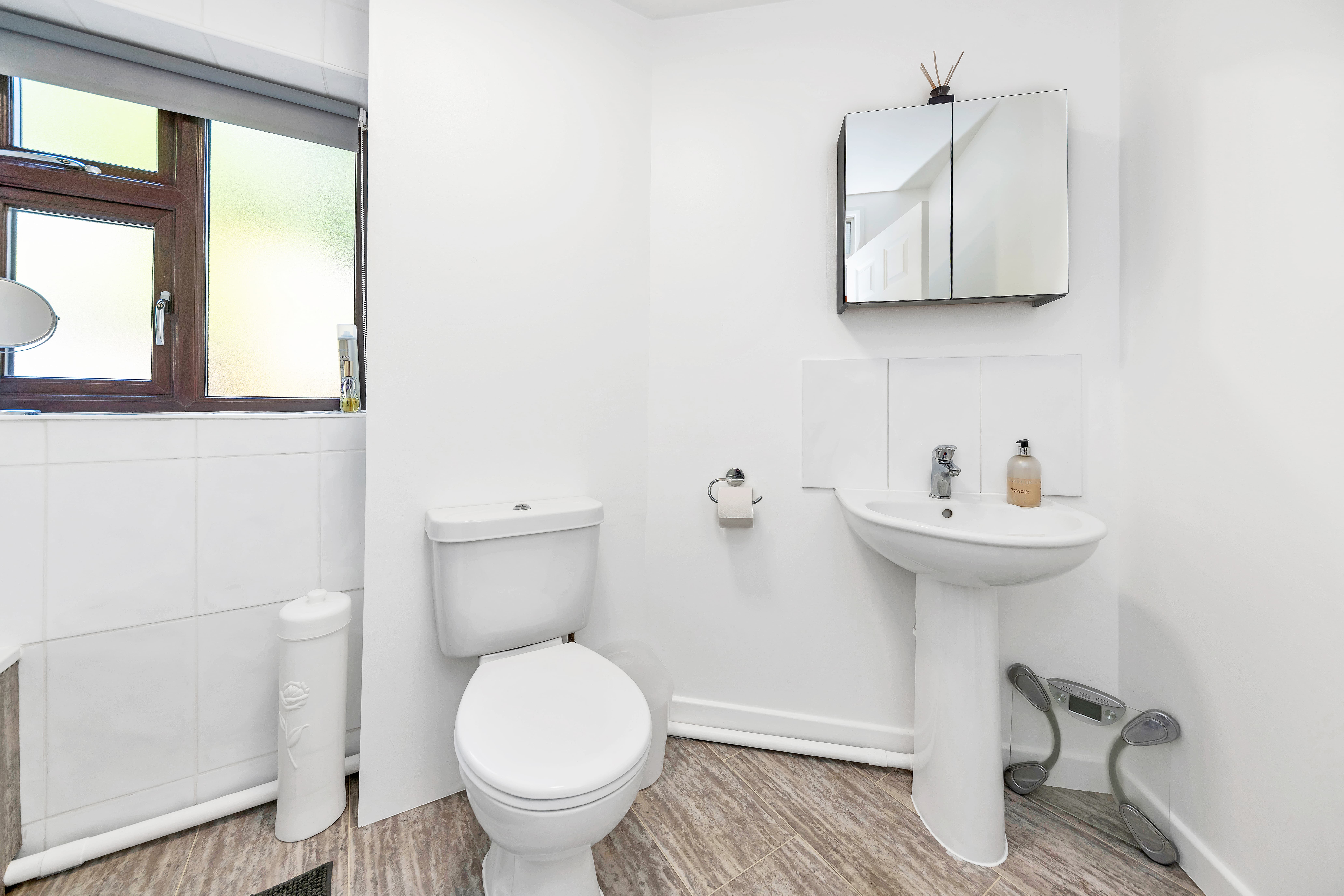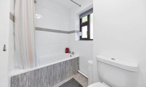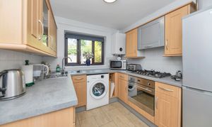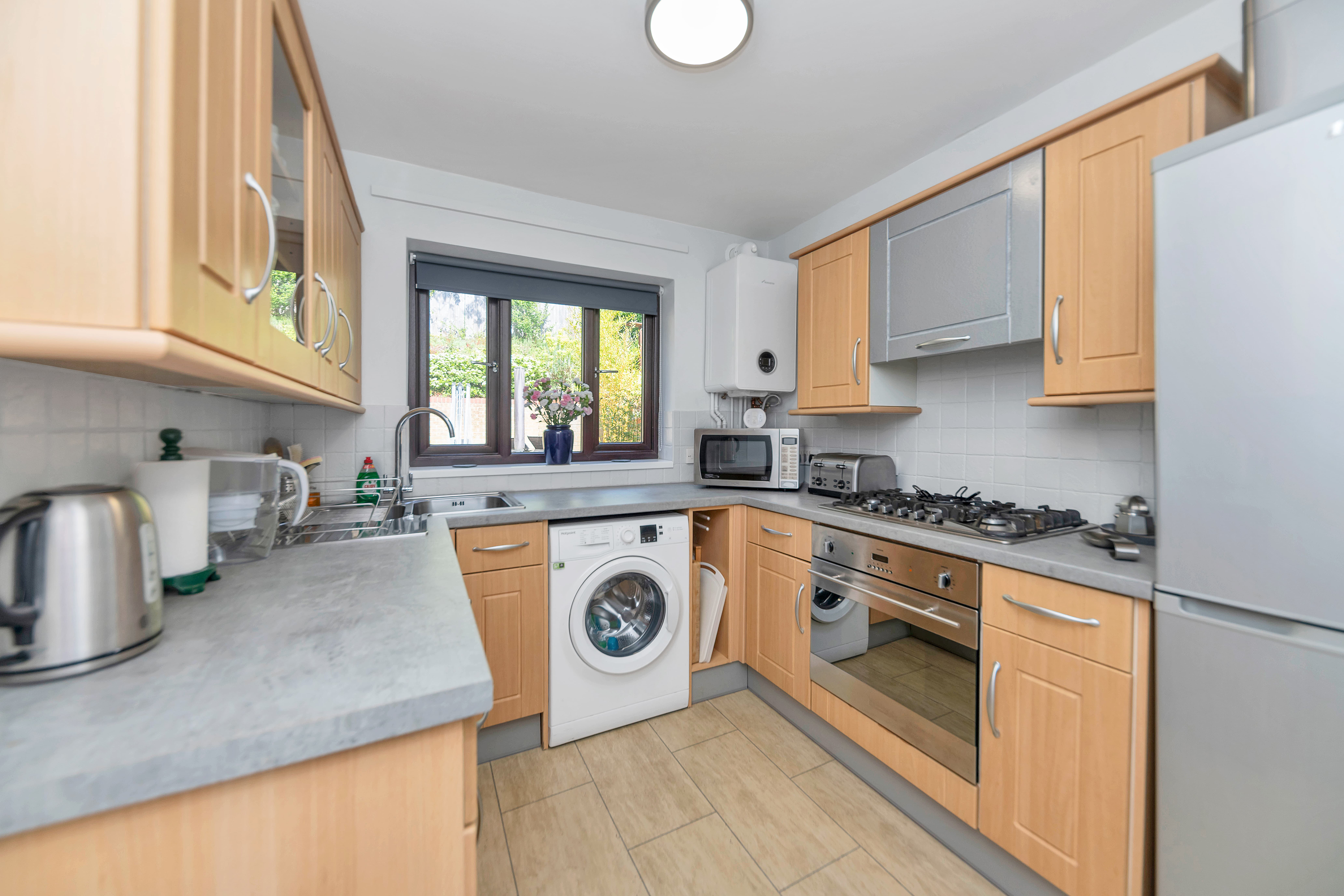 The kitchen is a very good size, enjoying a window over looking to communal garden, a range of base and wall units, laminate worktops, tiled flooring and splashbacks, an integrated oven, gas hob and extractor fan, and space for a fridge/freezer, a washing machine, and other small kitchen appliances.