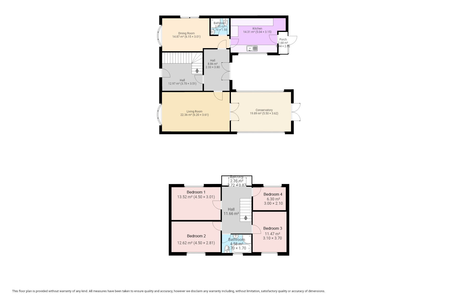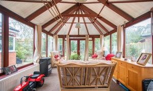Upstairs, the property boasts 4 spacious bedrooms, alongside a balcony providing views and natural light. Additionally, a conservatory provides a connection to the large garden.