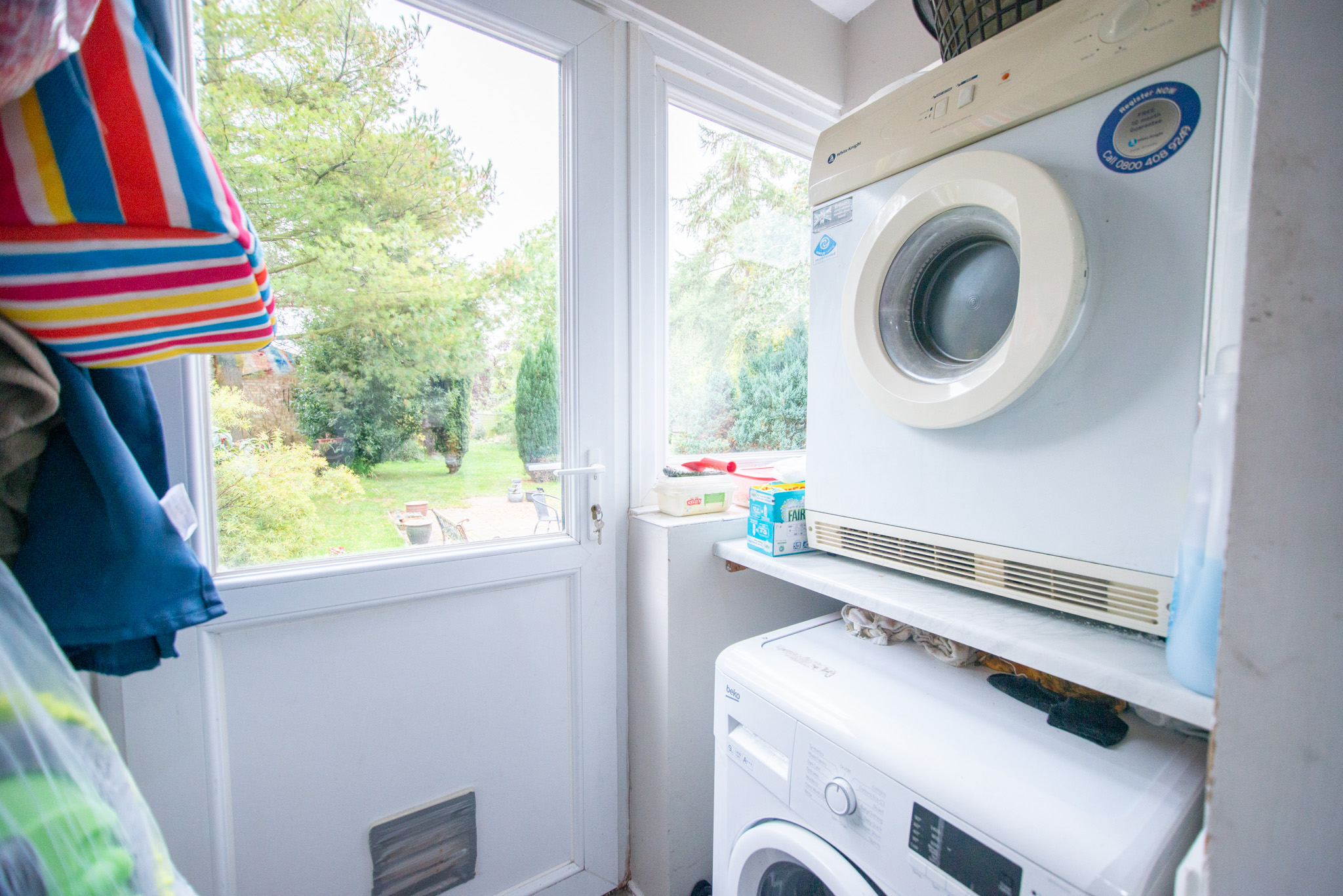 With carpet and vinyl flooring, stairs and doors to the rear garden.