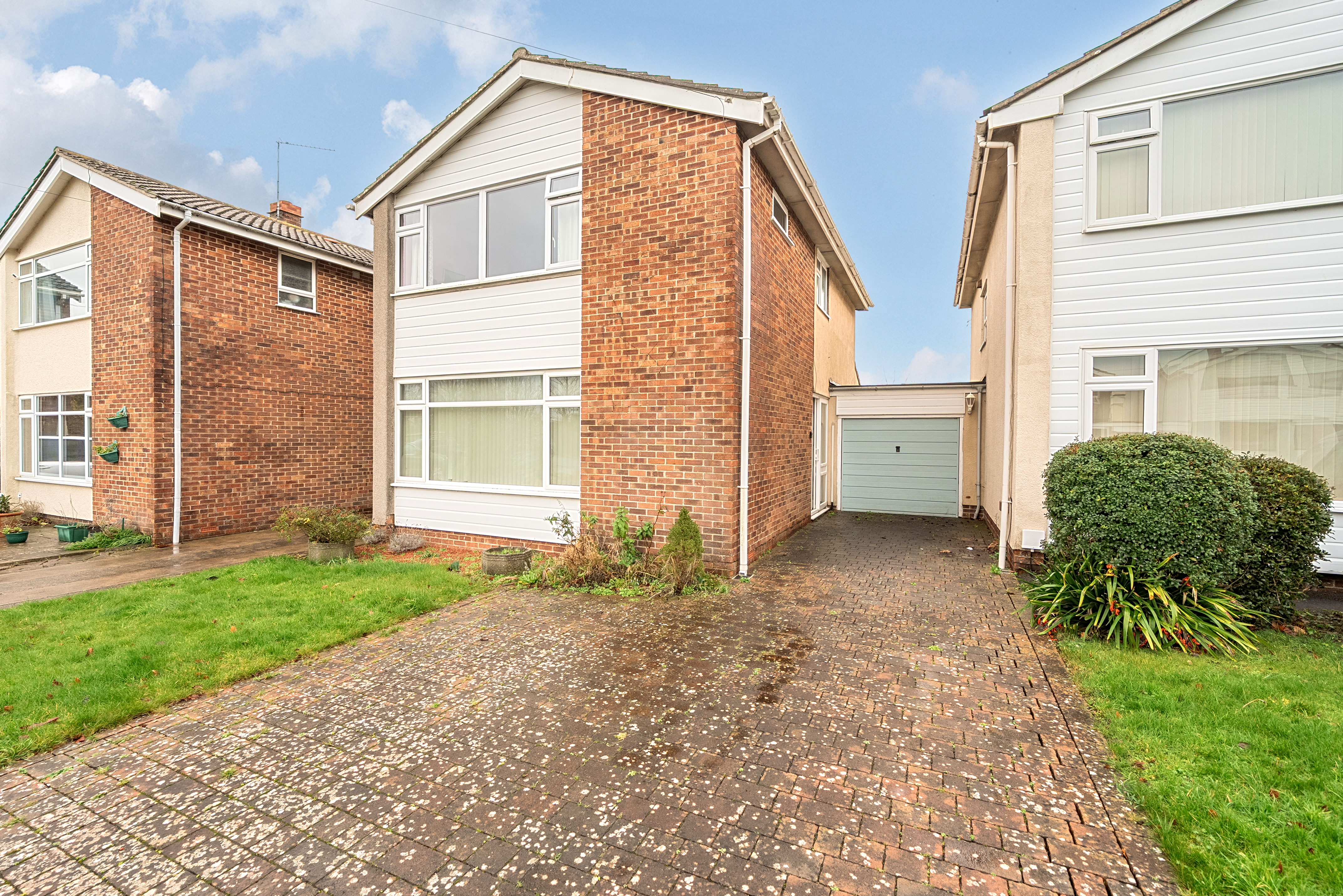 To the front of the property there is a lawned area and to the left a block paved driveway offering parking for several cars which leads to the garage with up and over door.