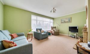 To the left, a door leads into the spacious sitting room, where a large front-facing window brings in plenty of natural light.