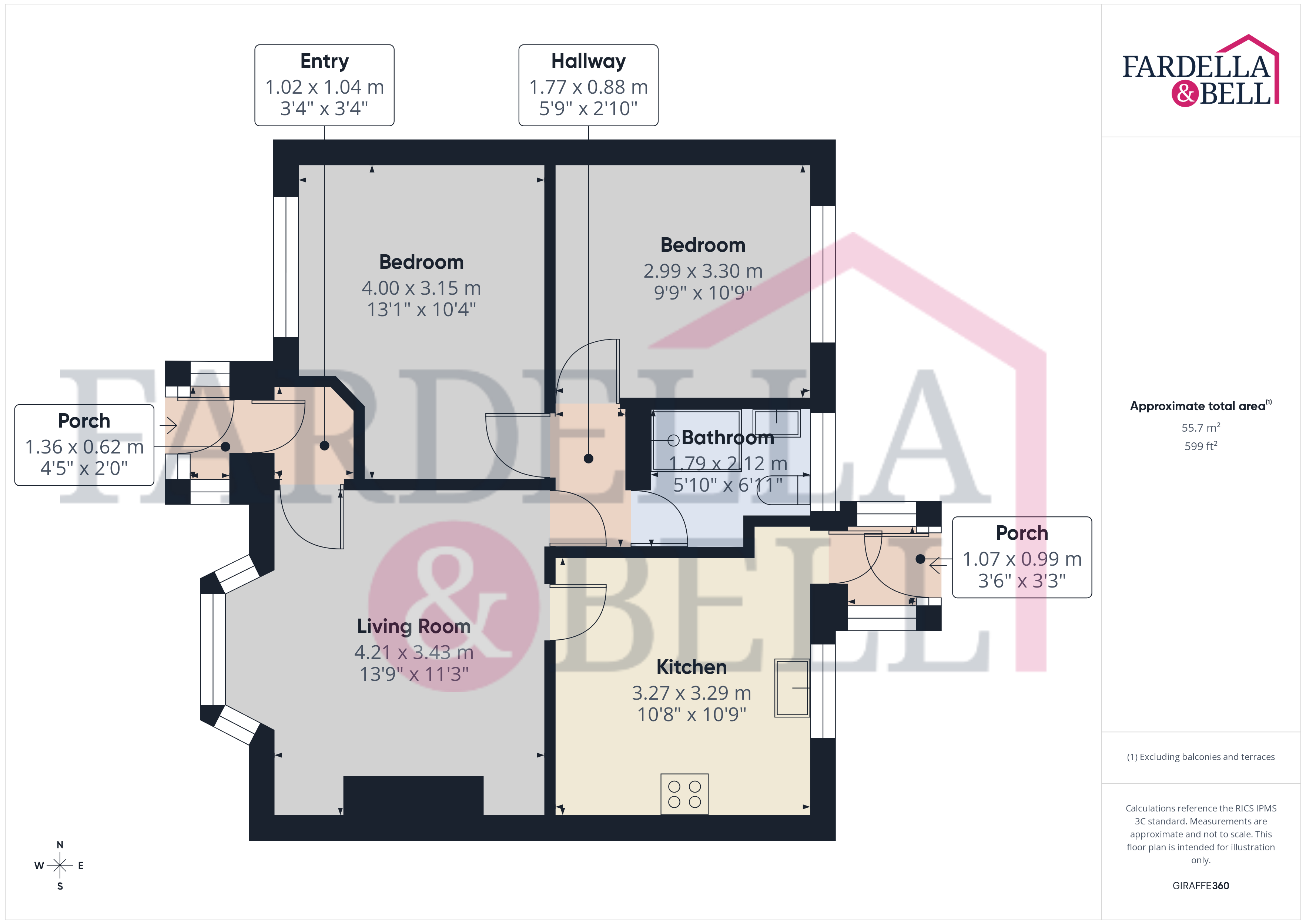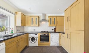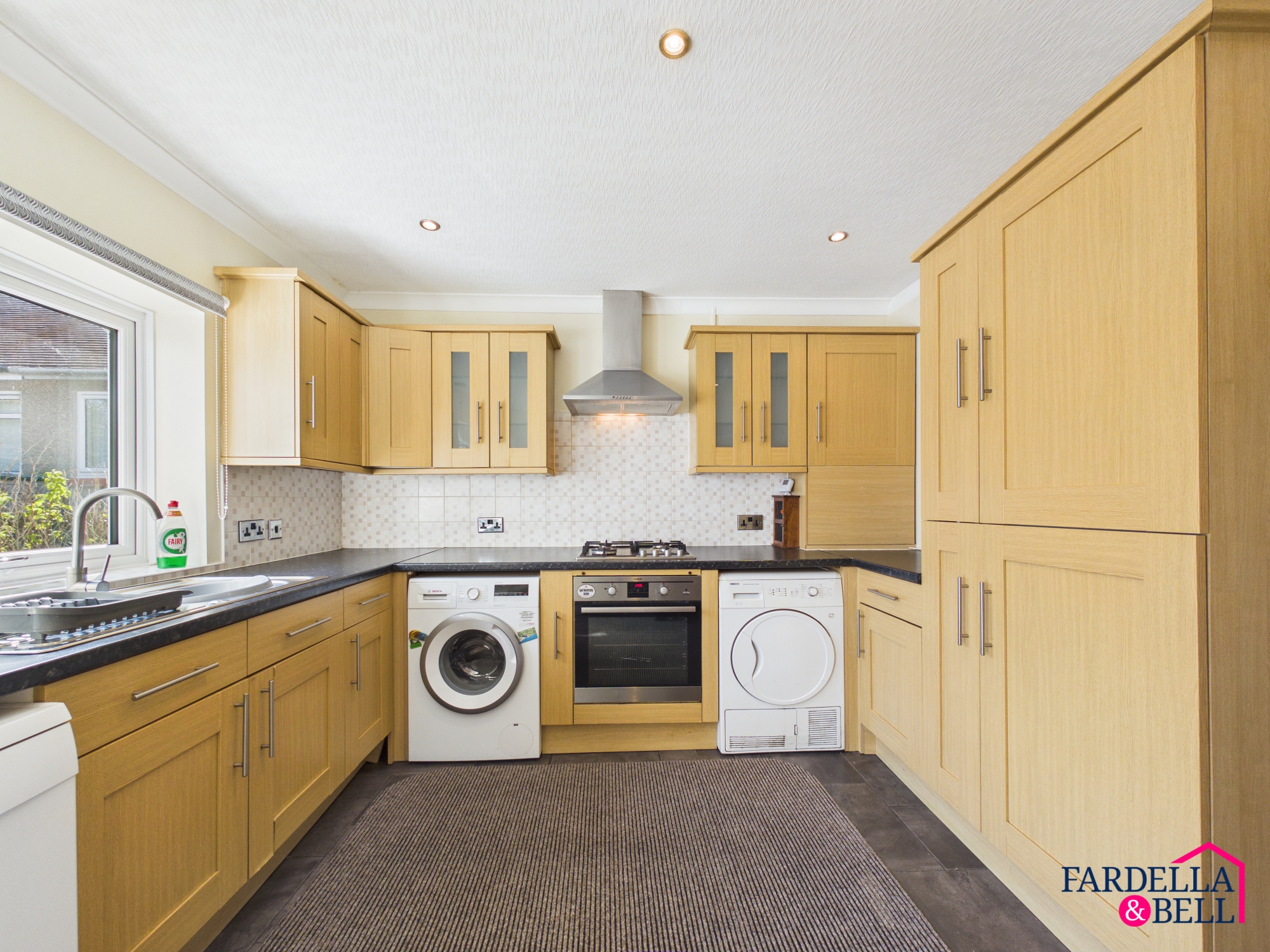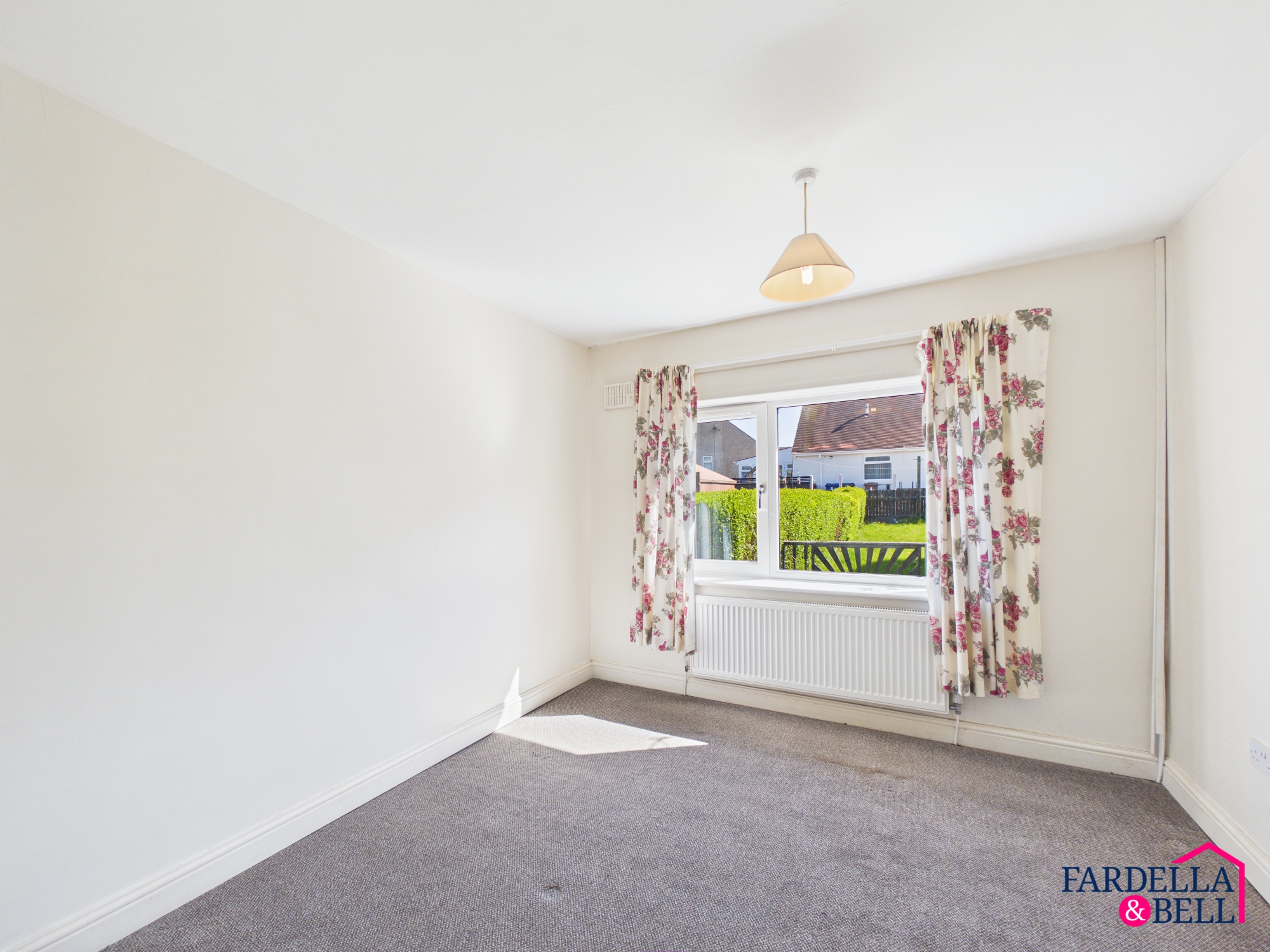 Entered via an entrance porch, this bungalow offers a practical and well-balanced internal layout. To the front aspect, the living room is a comfortable reception space featuring a bay window that brings in plenty of natural light, along with a focal fire point, carpet flooring, radiator and ceiling light point. Positioned to the rear, the kitchen is fitted with a range of units and includes an integrated fridge, freezer, hob, oven and overhead extractor, with additional space for white goods. The bathroom is fitted with a three-piece suite comprising a shower enclosure, wash basin with vanity unit, push-button WC, useful storage and a frosted window. A central hallway provides access to the loft. Bedroom two is located to the rear and is a room of double proportions with radiator and light point. The main bedroom sits to the front and is also a double room, benefiting from fitted wardrobe storage, light point and central heating radiator. A rear porch completes the accommodation.