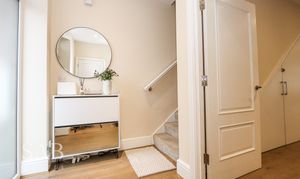 Upstairs, the first floor comprises three well-proportioned bedrooms and a modern family bathroom, while the top floor offers two spacious en-suite bedrooms, providing a flexible and practical layout. The property comes fully furnished with high-quality furniture and smart appliances already in place, including a 65” Samsung TV, CCTV system, and office furniture.