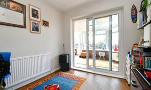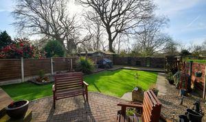 It occupies a generous plot, with a driveway to the front providing off-road parking for several cars, and a large garden to the rear that benefits from the sun