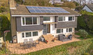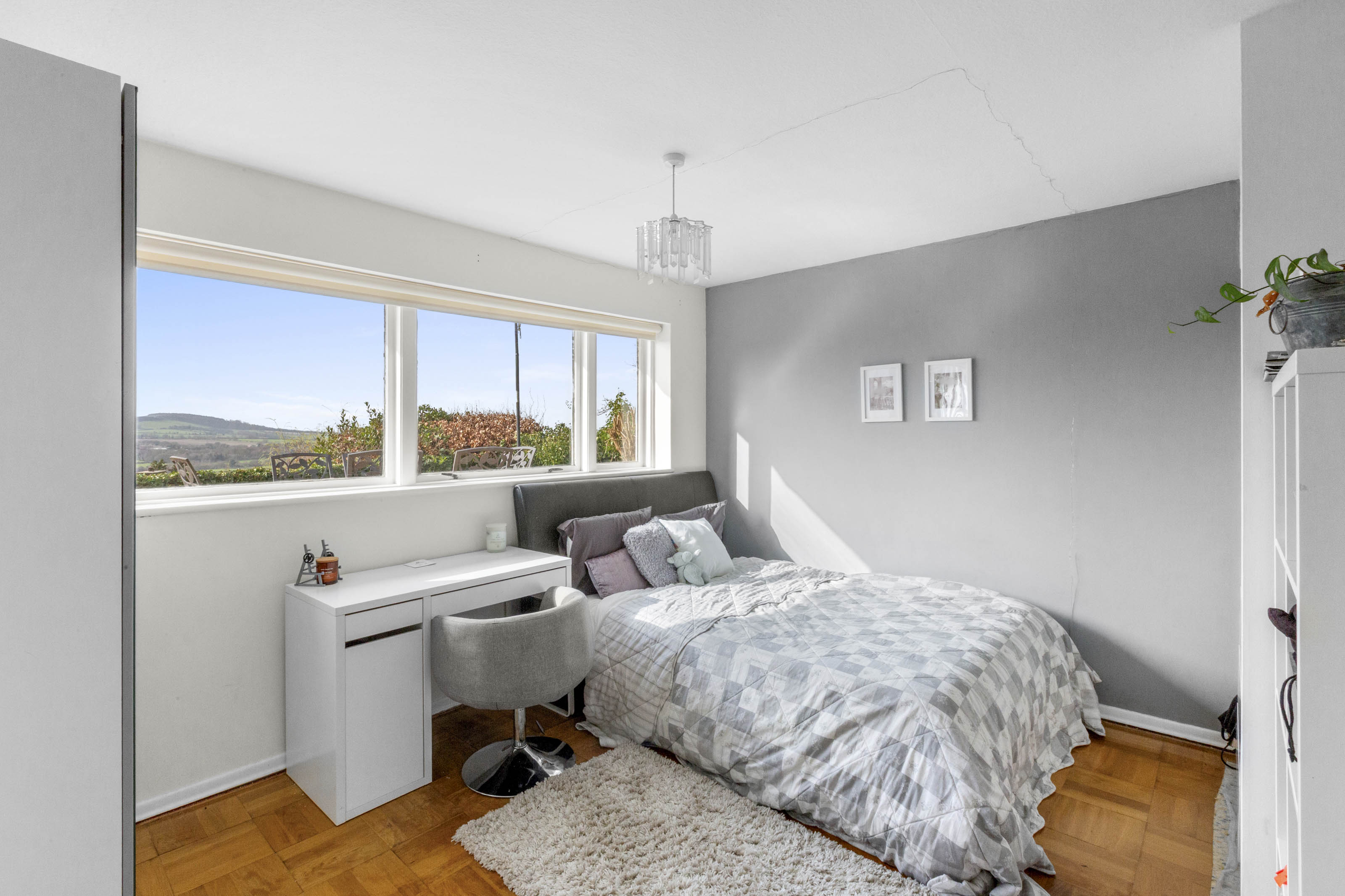 An extended, four-bedroom detached home set on approximately 0.28 acres, enjoying panoramic views over open countryside. Built in the 1960s to a distinctive Canadian-inspired design, the property offers over 2,040 sq. ft. of well-arranged accommodation across three levels and benefits from solar PV (photovoltaic) panels, helping to improve the home’s energy efficiency.