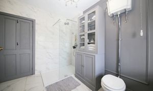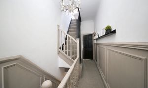 The heart of the home is undoubtedly the well-equipped kitchen, complete with built-in appliances, complemented by a third reception room, featuring bi-fold doors that open up to the garden. The harmonious flow between indoor and outdoor spaces creates an ideal environment for both entertainment and relaxation.