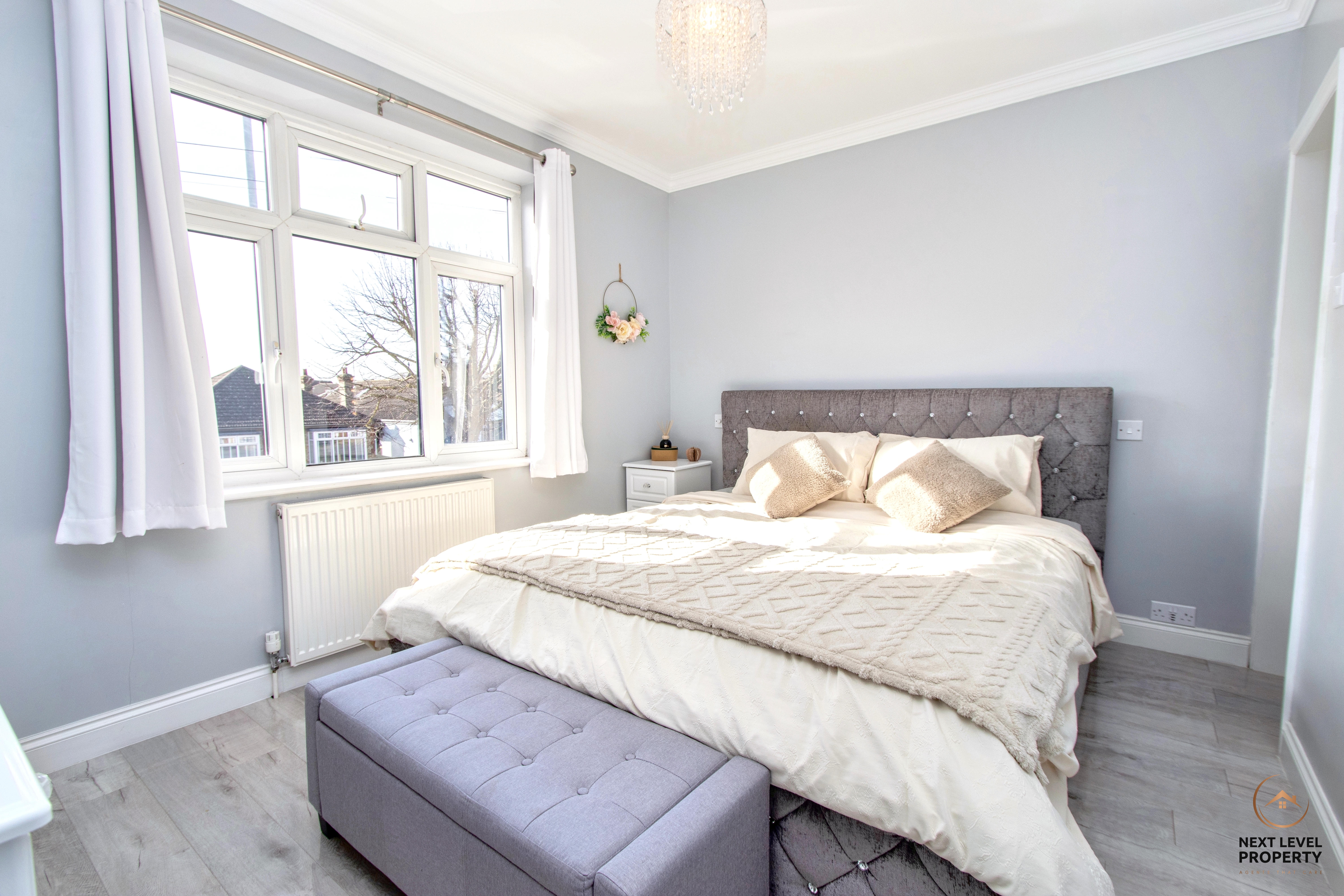 Another well-proportioned double bedroom, positioned to the rear of the property and enjoying a pleasant outlook via a uPVC window that brings in plenty of natural light. Finished with stylish laminate flooring and benefiting from a recessed storage cupboard, this room offers both comfort and practicality. A versatile space, ideal as a guest bedroom, children’s room or home office if required.