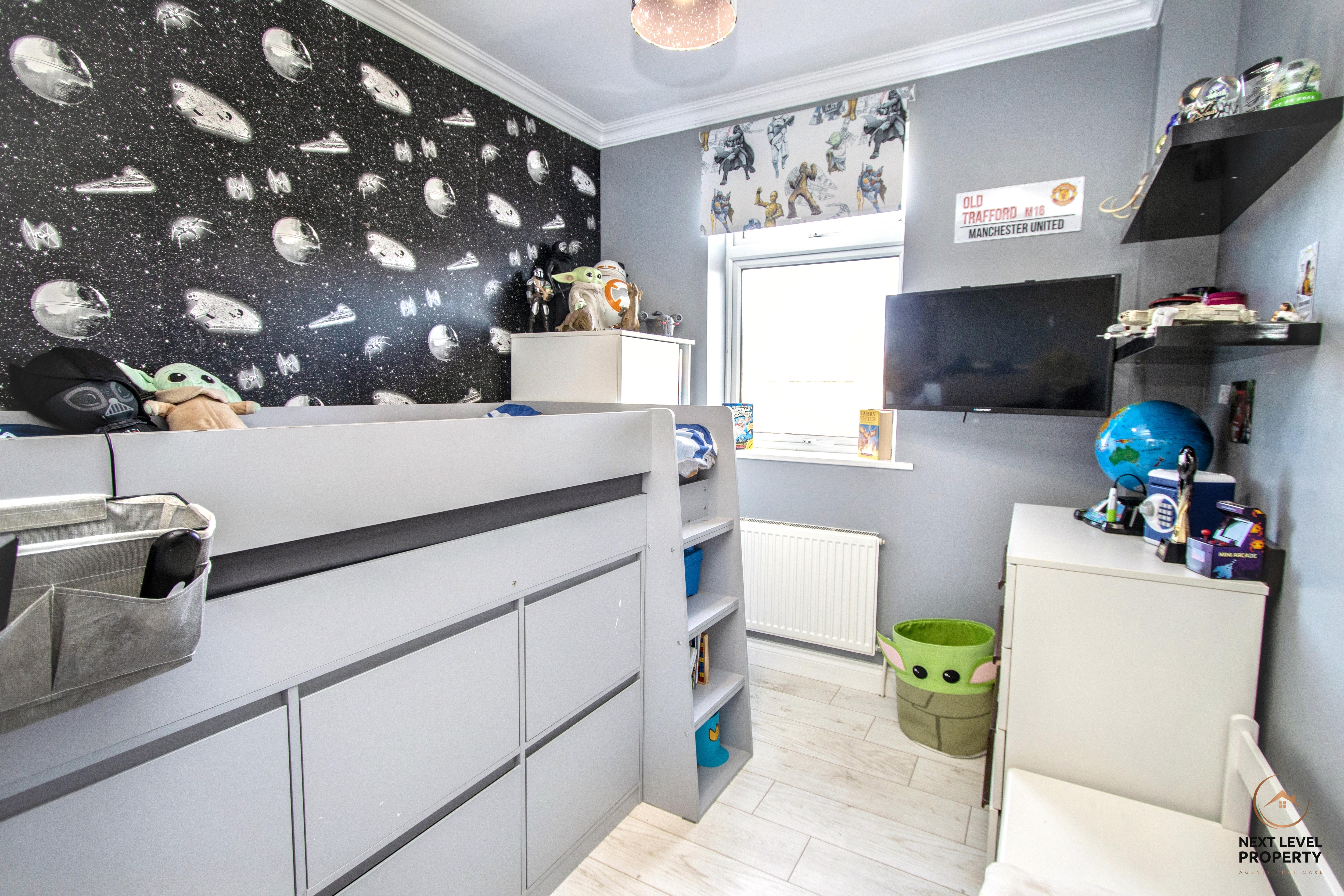 A comfortable single bedroom positioned to the rear of the property, featuring a uPVC window that allows natural light to flow in. Finished with laminate flooring and complemented by a radiator for year-round comfort, this room offers flexibility as a child’s bedroom, nursery or practical home office space.