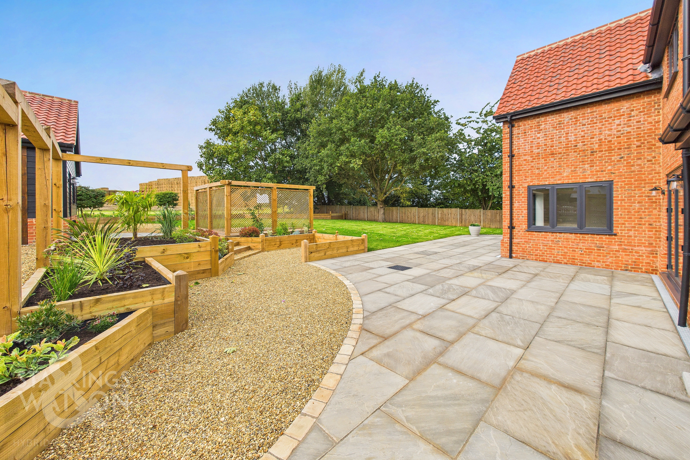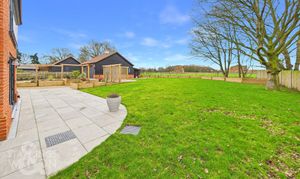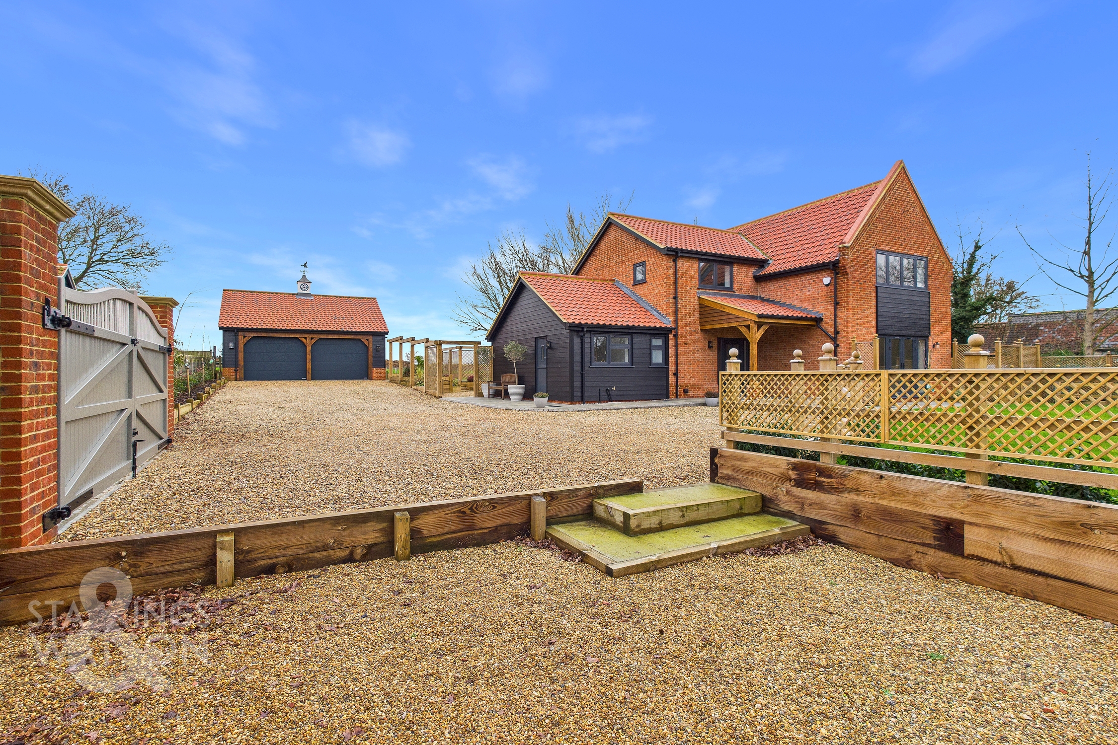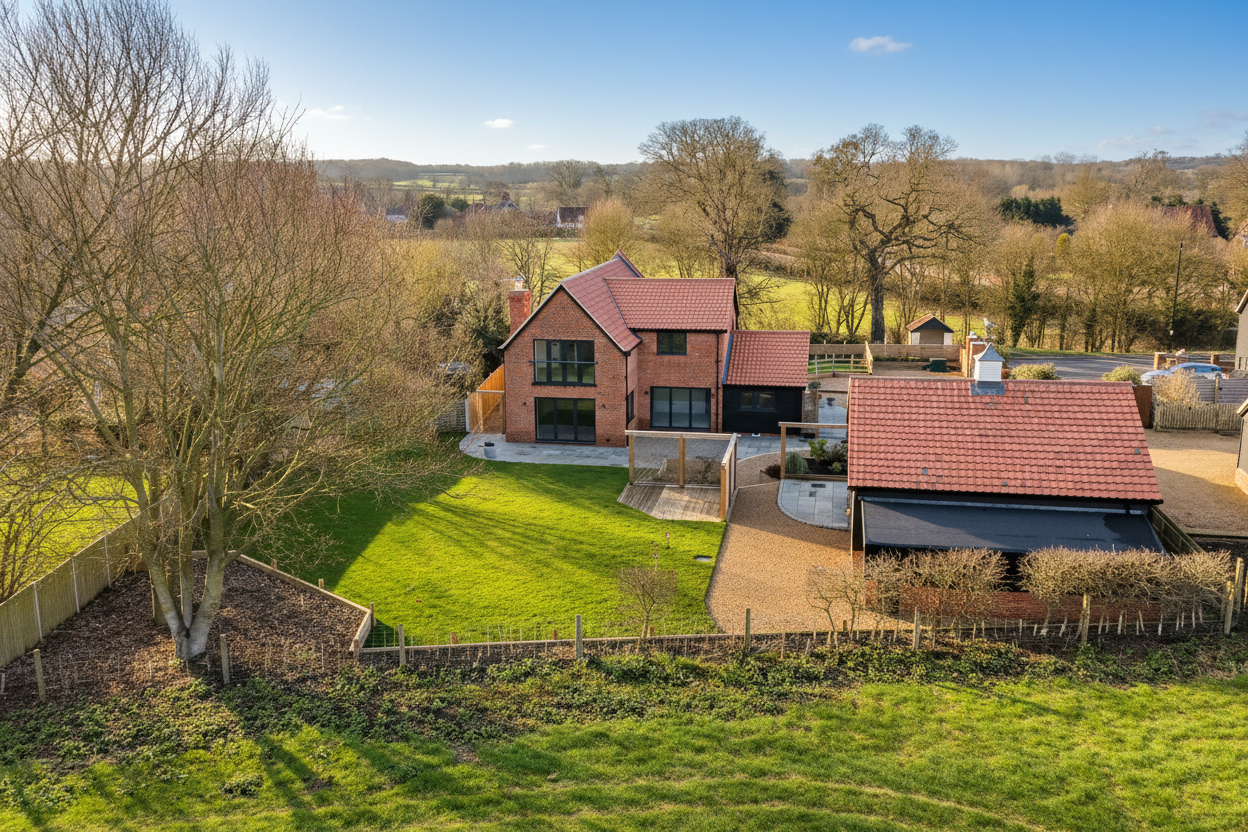 Immerse yourself in LUXURIOUS LIVING with this BRAND NEW HIGH SPECIFICATION family home, boasting a 0.37 ACRE PLOT and over 1980 sq. ft (stms) of accommodation. Every detail exudes BESPOKE LUXURY, from the GATED DRIVEWAY, heritage-style build featuring intricate brick detailing and traditional styled rainwater goods. Internally, the ENGINEERED OAK WOOD FLOORING and underfloor heating via an AIR SOURCE SYSTEM adds to the contemporary feel, complemented by a cosy WOOD BURNER in the sitting room. The HALL ENTRANCE includes storage, with doors to the W.C, and SITTING ROOM, with its engineered OAK WOOD HERRINGBONE STYLE FLOORING, and BI-FOLDING DOORS which open to the garden. A ground floor GUEST DOUBLE BEDROOM includes attractive GARDEN VIEWS and FRENCH DOORS leading out, along with a LUXURY EN SUITE SHOWER ROOM. Culinary enthusiasts will adore the WREN KITCHEN, complete with QUARTZ SURFACES and a range of INTEGRATED APPLIANCES, adding to the allure of this exquisite property - with room for a table or soft furnishings where BI-FOLDING DOORS open to the patio. The UTILITY ROOM is finished in a matching style, with a WATER SOFTENER. Upstairs, THREE BEDROOMS include the main bedroom with a VAULTED CEILING and ‘Juliet Style’ BALCONY with PANORAMIC COUNTRYSIDE VIEWS - complemented by a luxury BATHROOM and EN SUITE with CONTRASTING TILING and RAINFALL SHOWER. The fully LANDSCAPED GARDEN delights with meticulous attention to detail at every corner, offering a rear garden predominantly laid to lawn with a full-width patio seating area. Alongside ample parking and access to the DETACHED DOUBLE GARAGE, a lean-to storage space offers further storage with useful outside W.C.