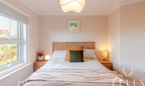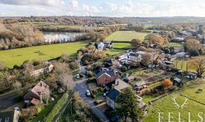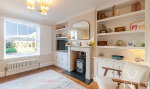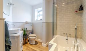 Upstairs, the landing leads to all three bedrooms and the family bathroom, and also provides access to the loft via a pull down Slingsby ladder. The main bedroom enjoys a lovely outlook over the green and parkland opposite. Both rear bedrooms look across grazing fields, giving a gentle connection to the surrounding landscape. The family bathroom has been styled with a P shaped bath, heritage fittings, wood panelling and brick tiles that echo the traditional feel of the property.