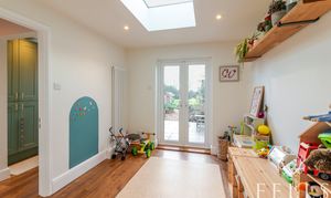 - Two sky lanterns bringing natural light to kitchen and garden room