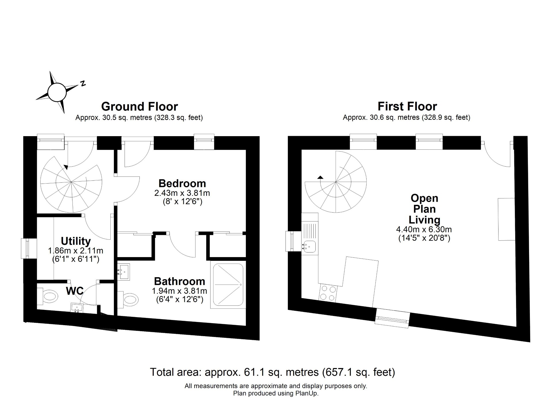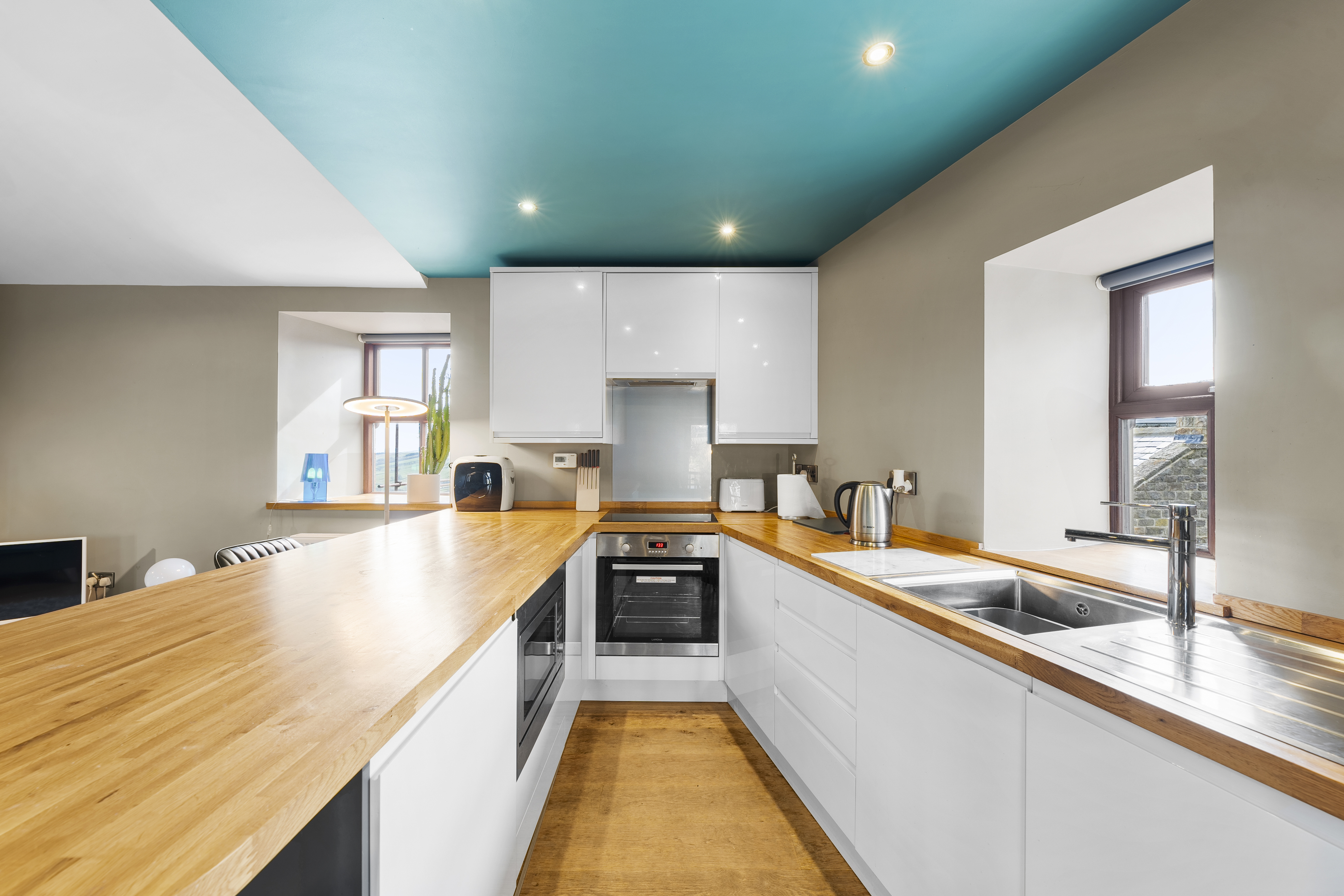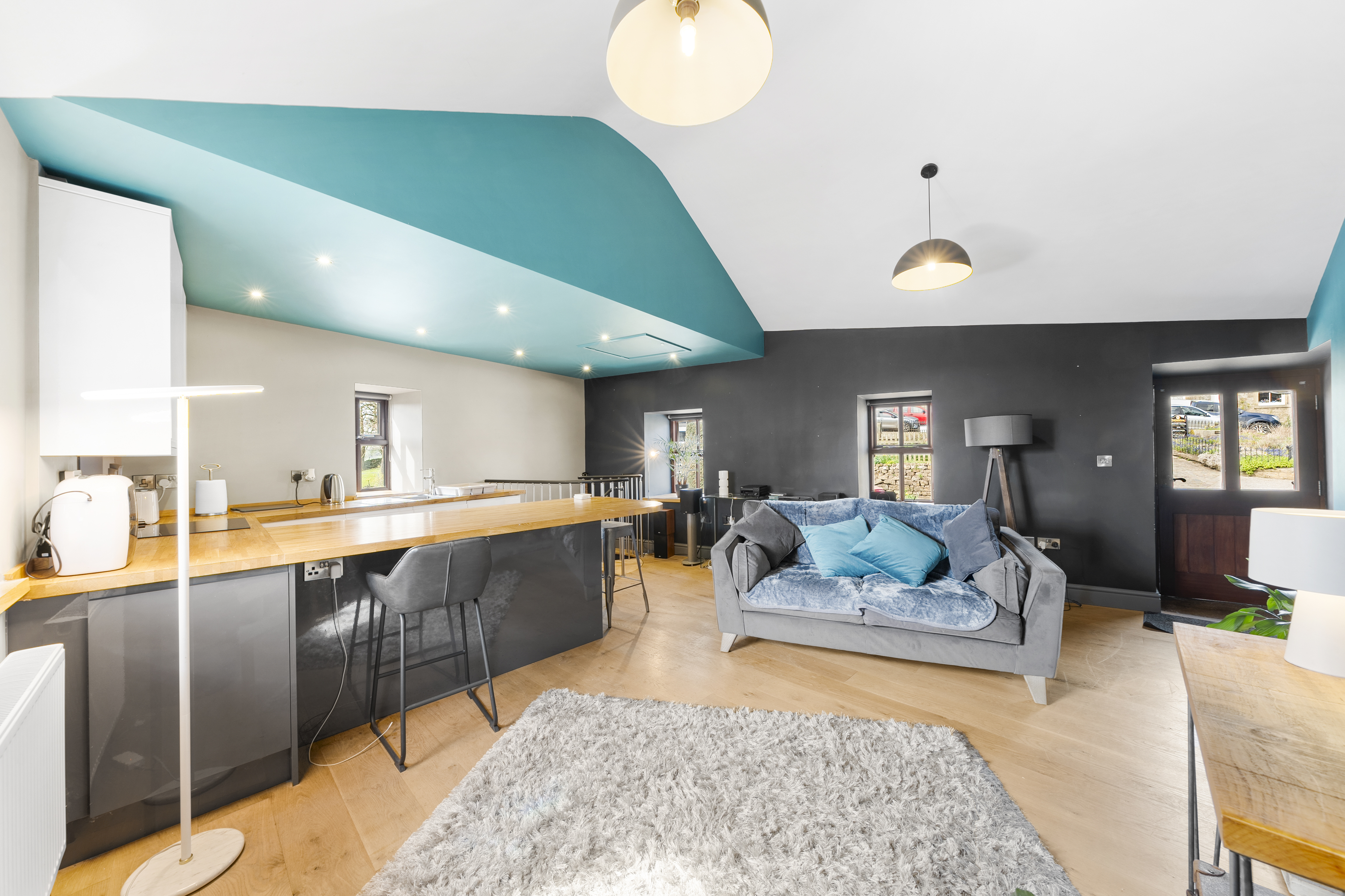 With oil fired central heating and double glazing the cottage comprises in brief. Private entrance hall approached via a feature arched doorway. Solid Oak wooden floors and a circular staircase rising to the first floor. Guest wc and a useful modernised utility room. Bedroom one with solid Oak wooden floors, fitted wardrobes and a modern en-suite shower room finished in porcelain tiling. Door to outside. First floor, impressive open plan living/dining space with solid Oak wooden floors. Recessed modern wood burning stove with mantle over. Shelving to chimney breast. Modern breakfast kitchen with integrated appliances, breakfast bar and beech work surfaces over. Door leading to the external stone steps down to the front forecourt.