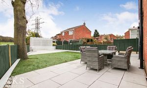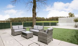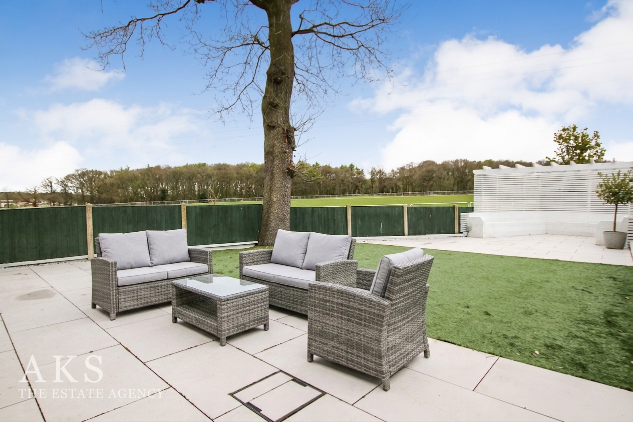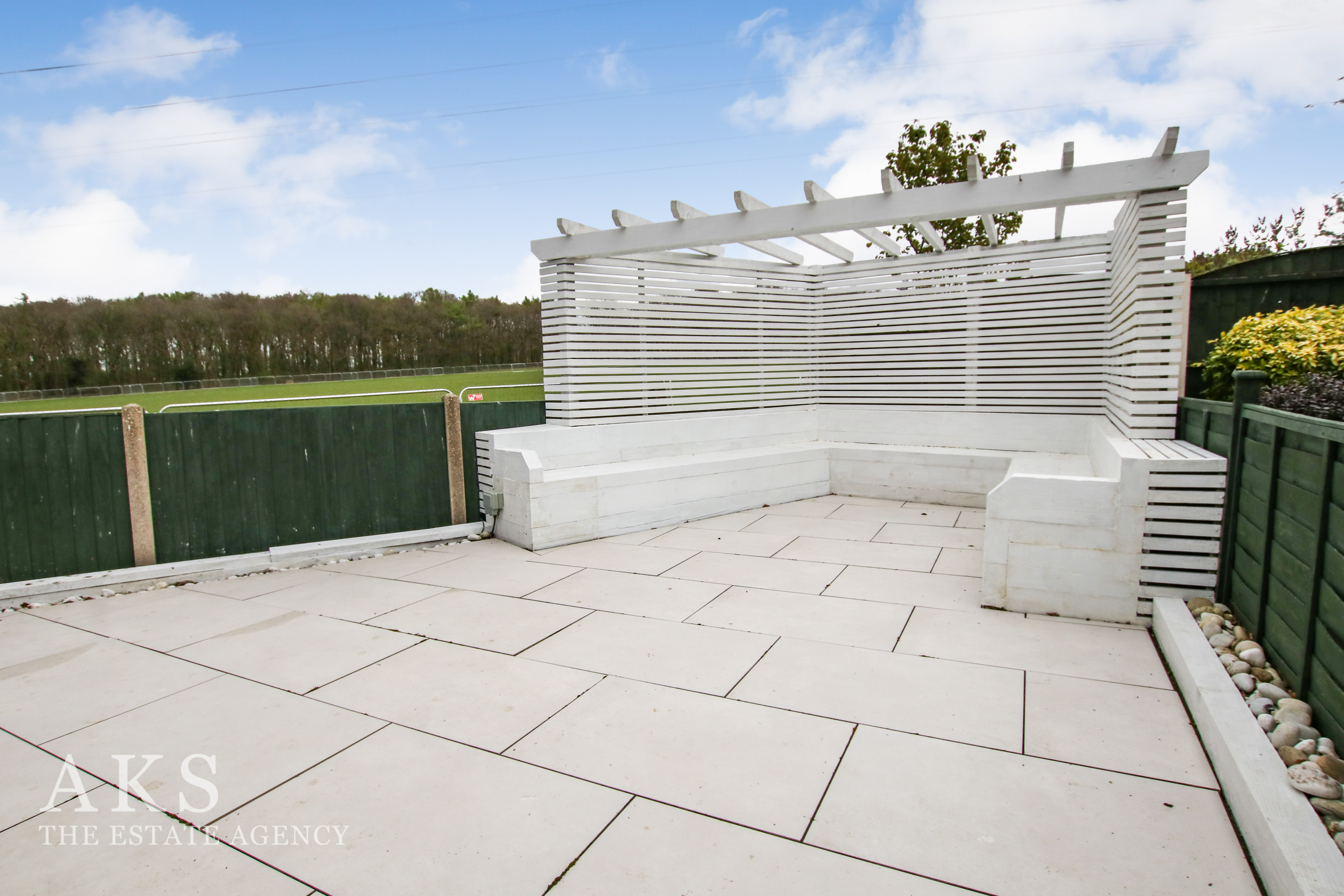 Outside is where this home really shines. The garden has been thoughtfully designed with a bespoke seating area that’s perfect for entertaining, along with low-maintenance artificial lawn and additional patio space for outdoor dining. Backing onto green space, it’s a peaceful backdrop that’s hard to beat.