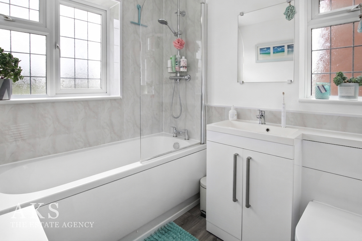 Upstairs, there are three proper double bedrooms, which is a big plus. The main bedroom has its own en-suite, while the family bathroom is bright and well-designed, with a shower over the bath.