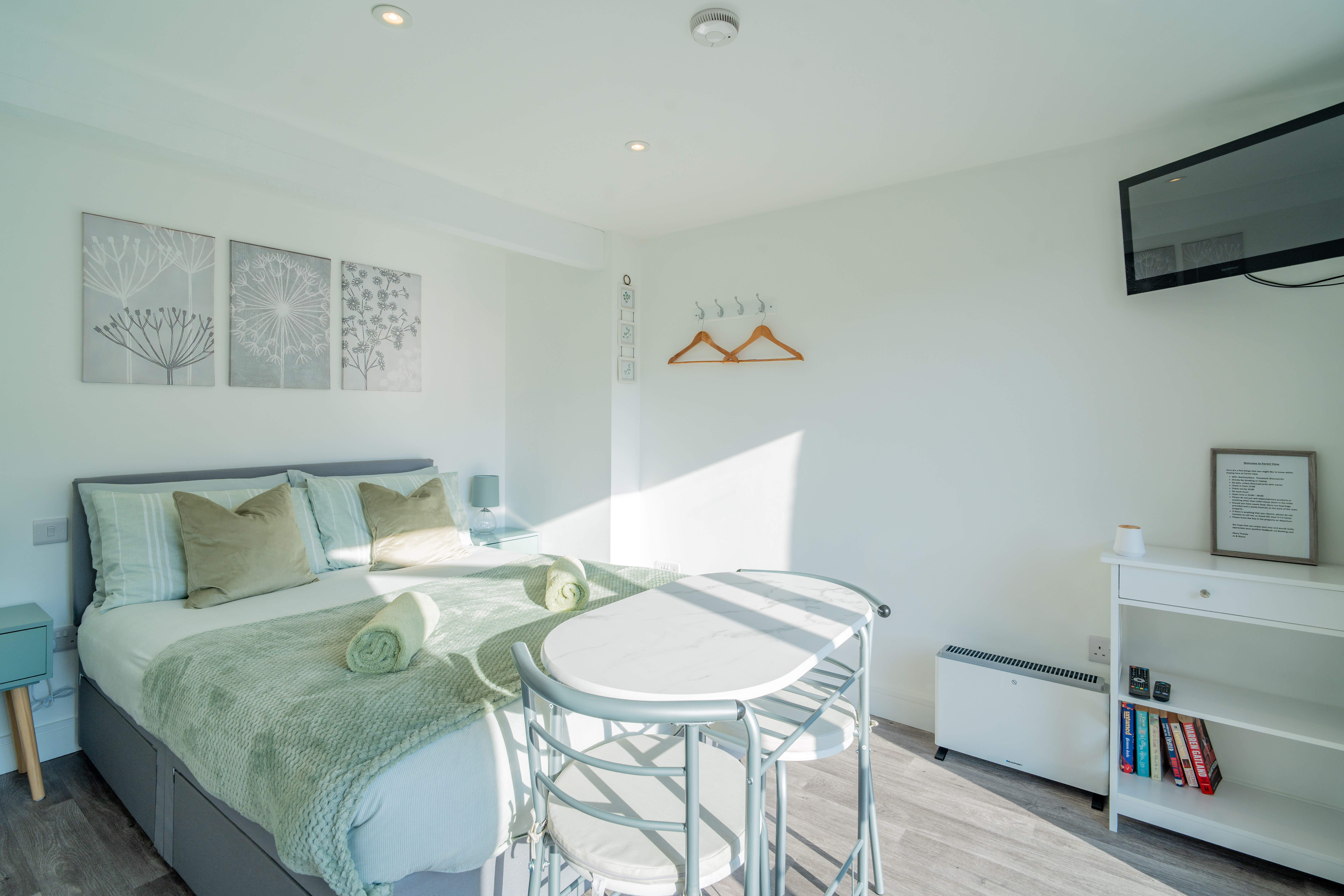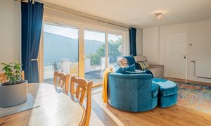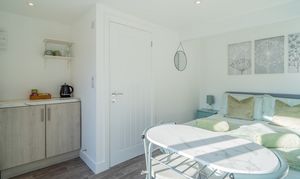A beautifully converted annexe with outstanding views provides an ideal holiday let or guest accommodation, featuring a kitchenette, ash-grey flooring, and an en-suite shower room – perfect for multi-generational living or income potential.