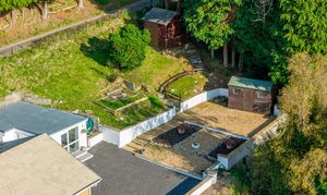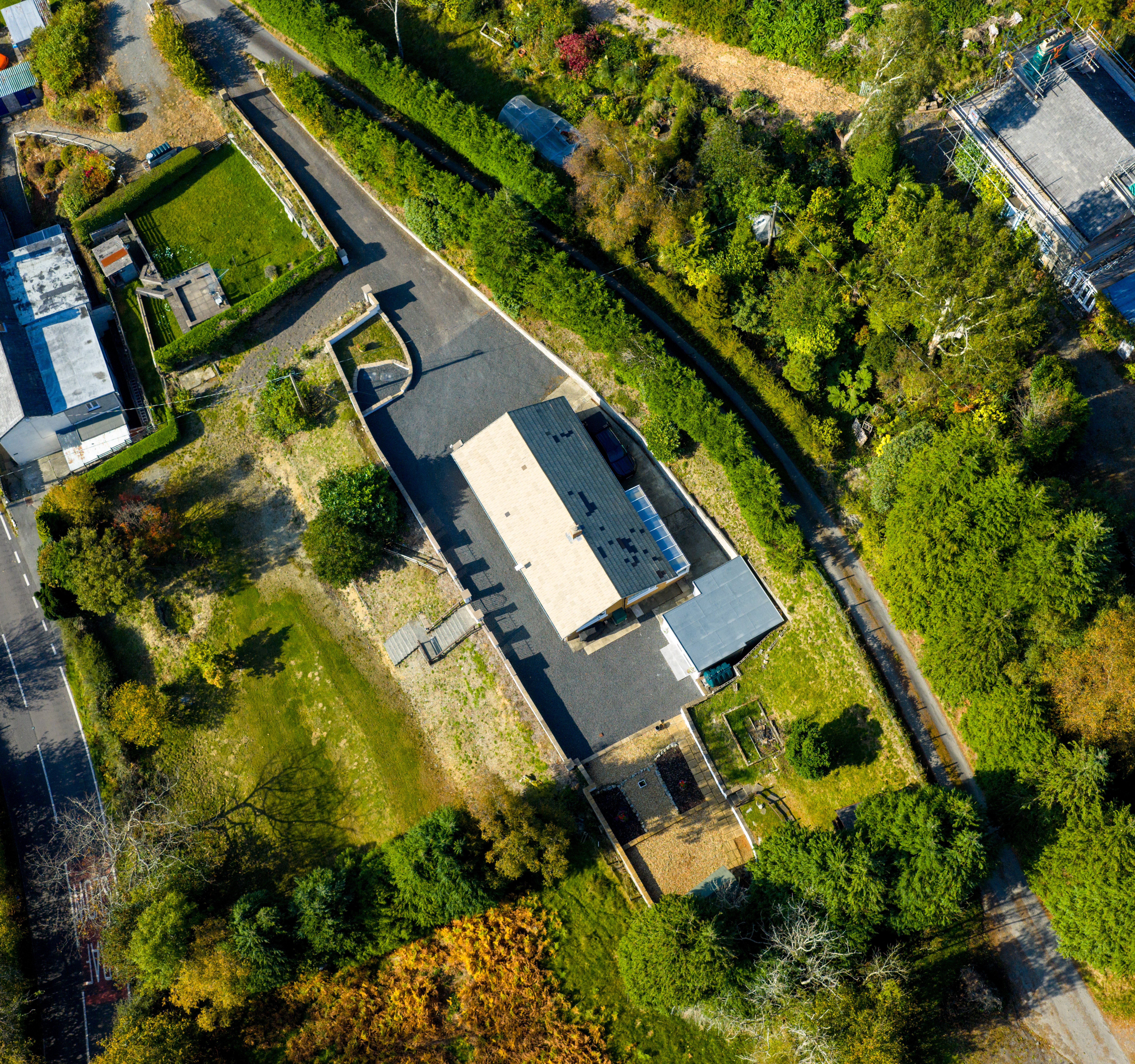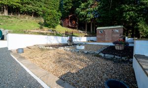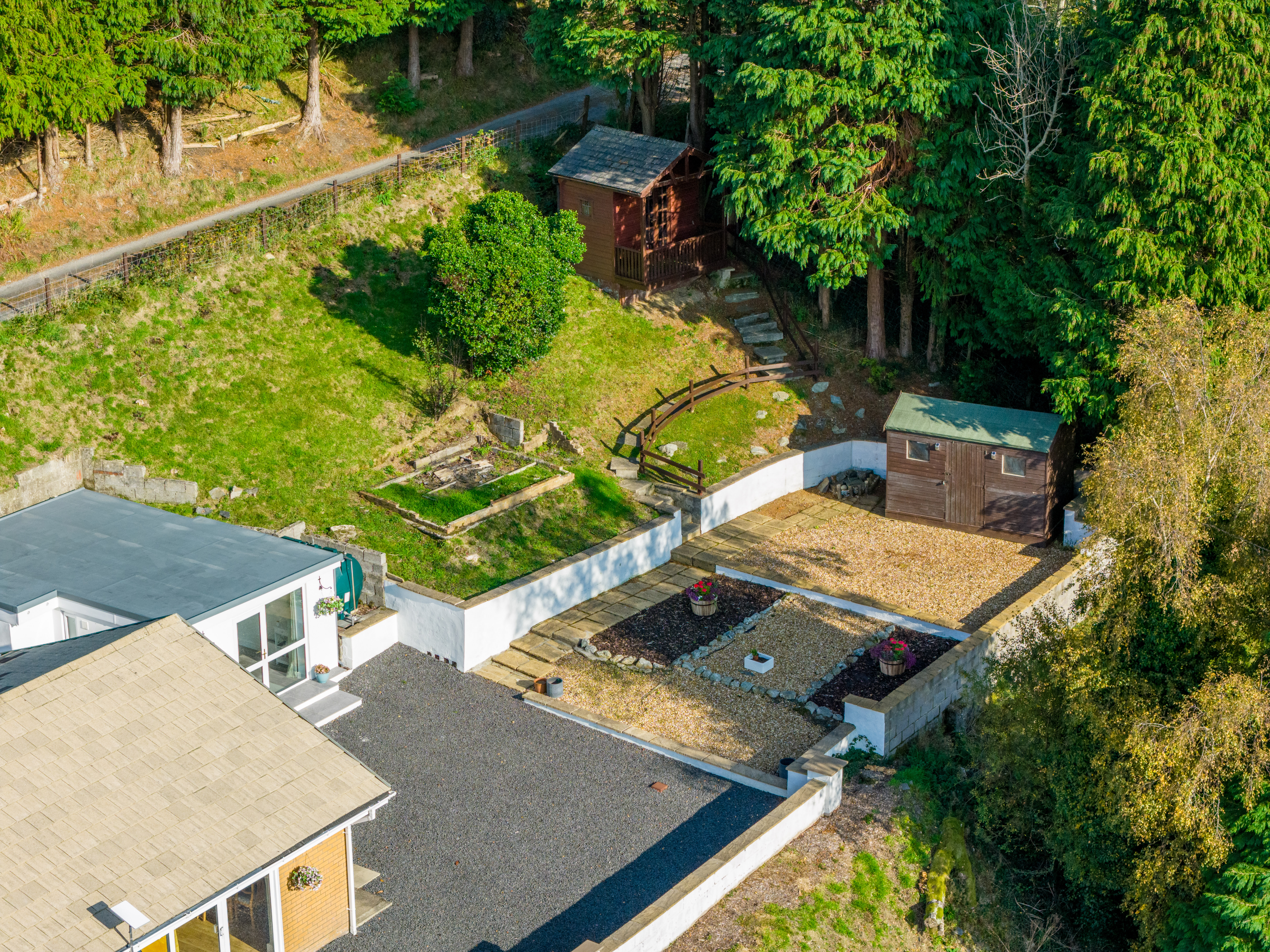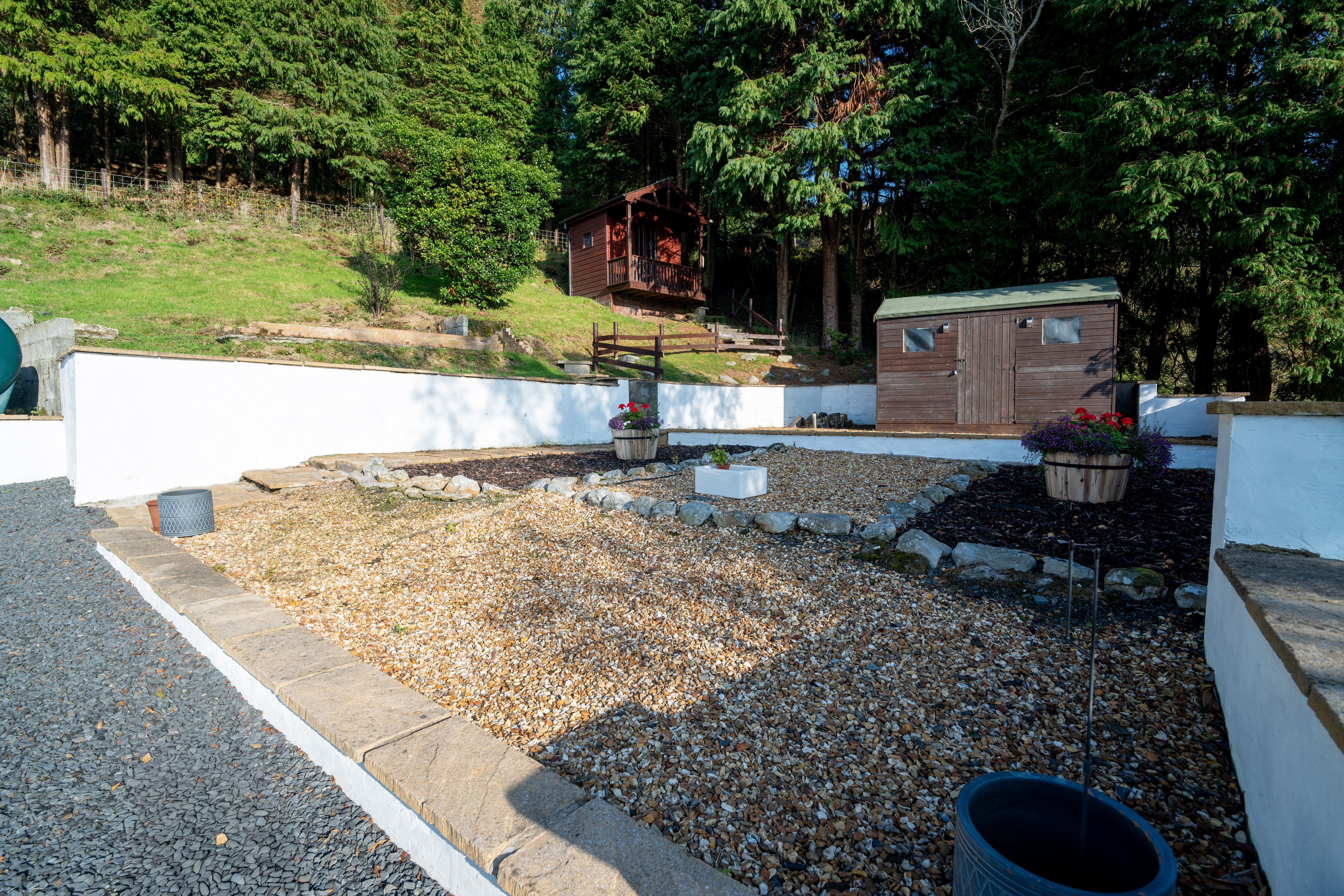 A key feature of this property is the generous plot of approximately 1.5 acres, offering landscaped terraced gardens to the side and a small paddock to the front. The grounds are beautifully arranged to enjoy the surrounding countryside, with several seating and entertaining areas positioned to take full advantage of the views. There is ample parking for several vehicles, together with space for a motorhome or trailer if required. The gardens feature established shrubs, gravel terraces, and a large timber shed, while an elevated summer house provides the perfect vantage point for panoramic views across the valley and forest beyond.