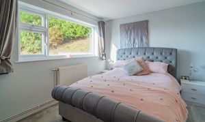 A comfortable double bedroom positioned at the front of the property with a southerly outlook, enjoying good natural light and space for freestanding furniture.