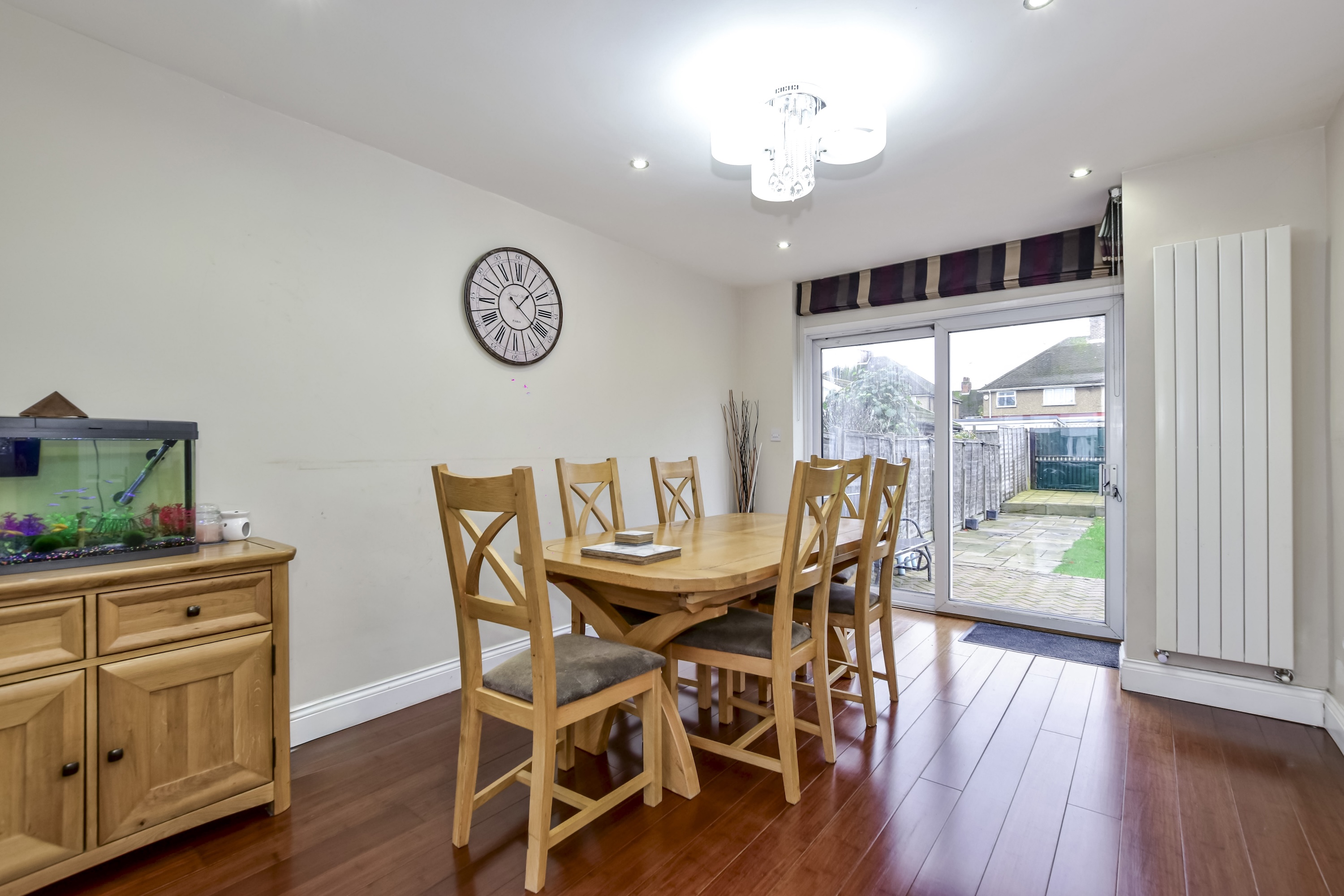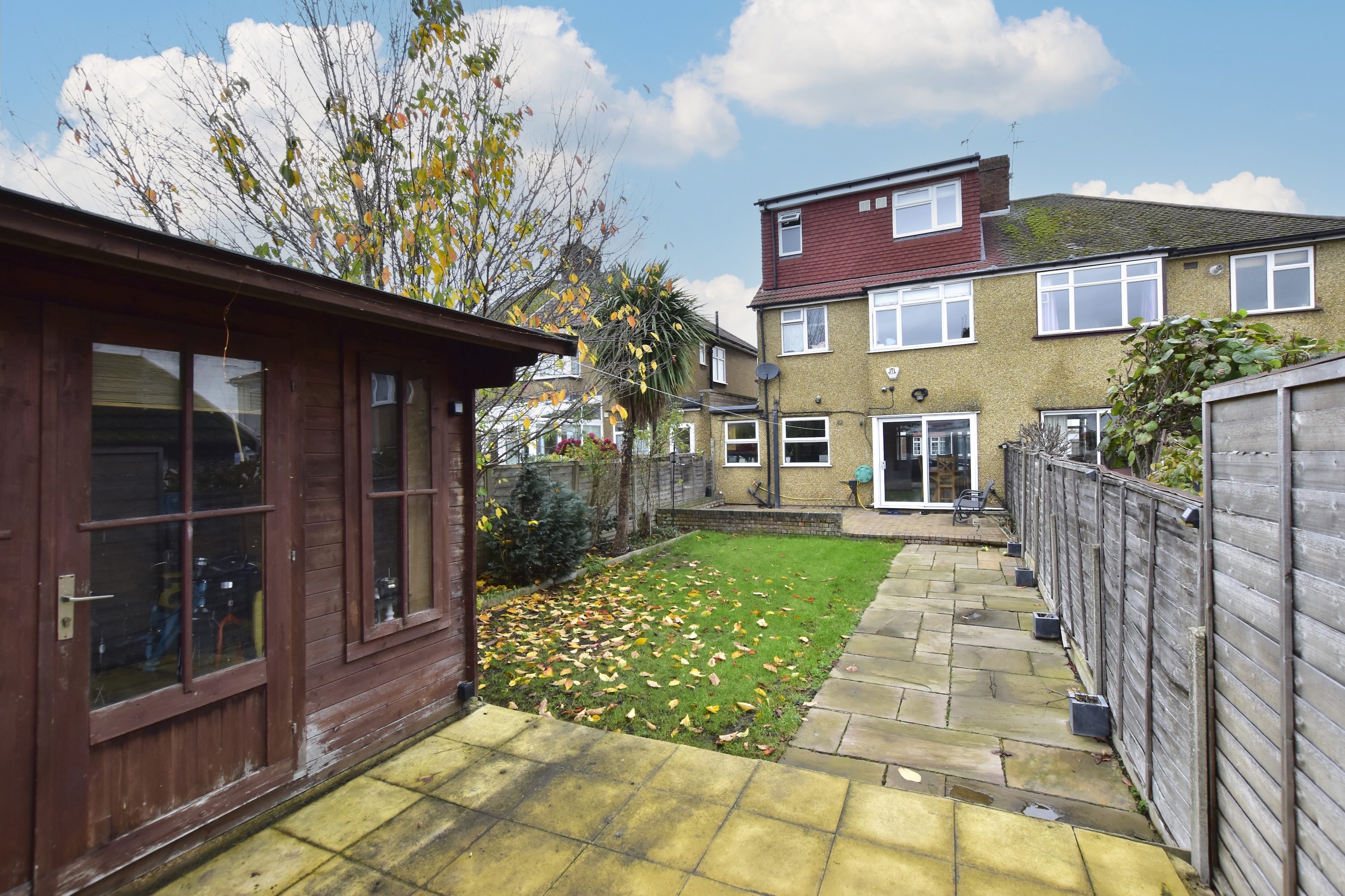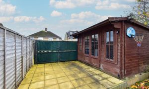 The rear garden is a wonderful extension of the living space, mainly laid to lawn with a generous patio area ideal for outdoor dining, and benefits from an outbuilding offering additional flexibility for storage or hobbies.