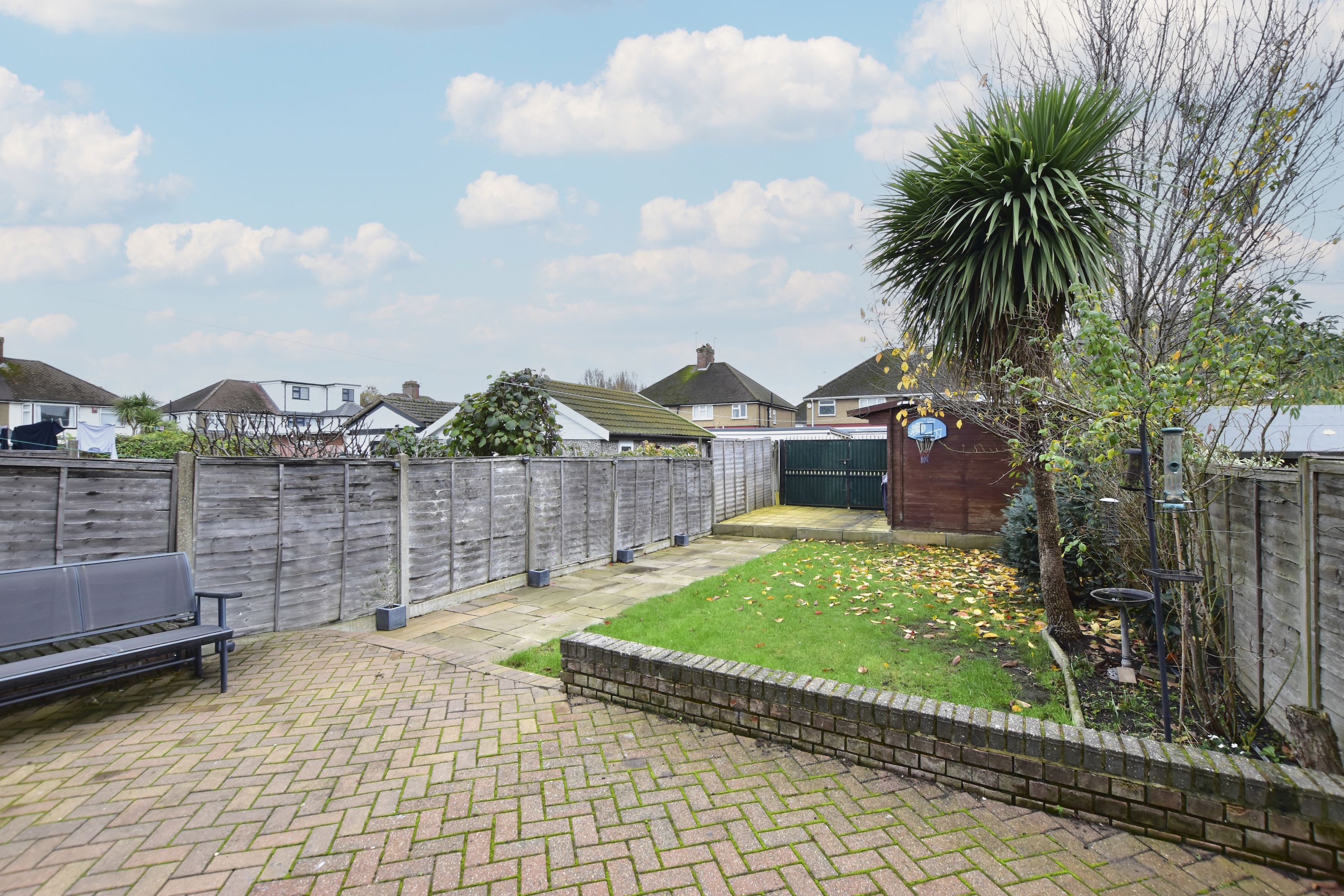 - Garden with patio & outbuildins