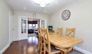 The ground floor welcomes you with an inviting entrance hallway that leads into a beautifully presented formal living room, complete with a bay window and folding doors that open into a spacious dining room, allowing the two areas to seamlessly connect when desired. From here, doors open directly onto the rear garden. The kitchen is fitted with quality Bosch appliances and provides excellent worktop space, while a separate utility room adds further practicality. A sleek, modern shower room completes the ground floor.