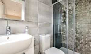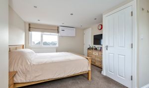 The principal bedroom occupies the top floor, having been converted in 2021 to create a private and stylish retreat. It features a contemporary en-suite shower room and access to useful eaves storage.