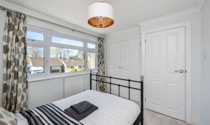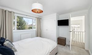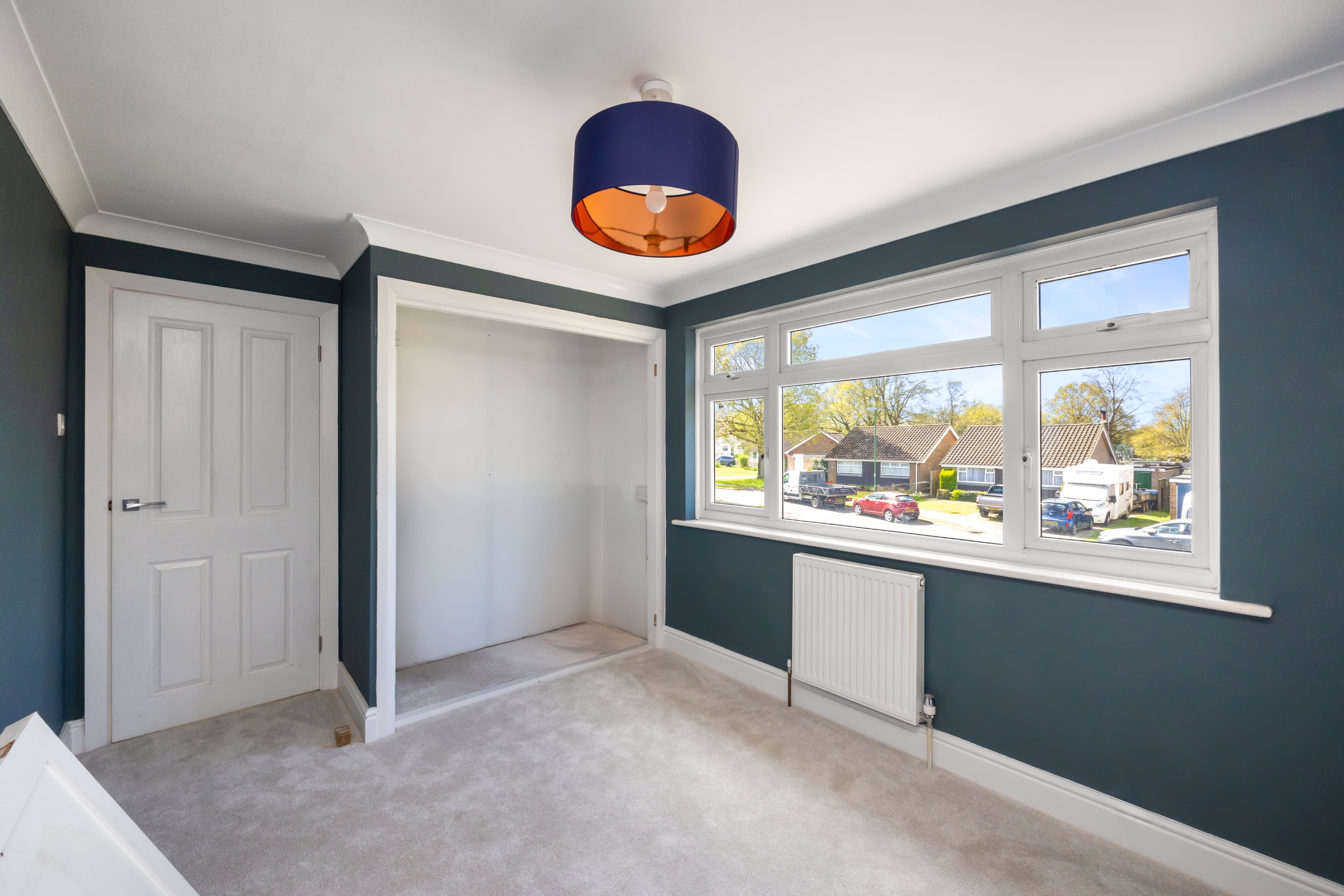 Bedroom Three: fitted double wardrobes, fitted carpet, uPVC double glazed window to front.