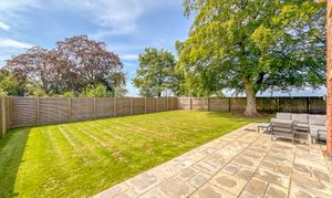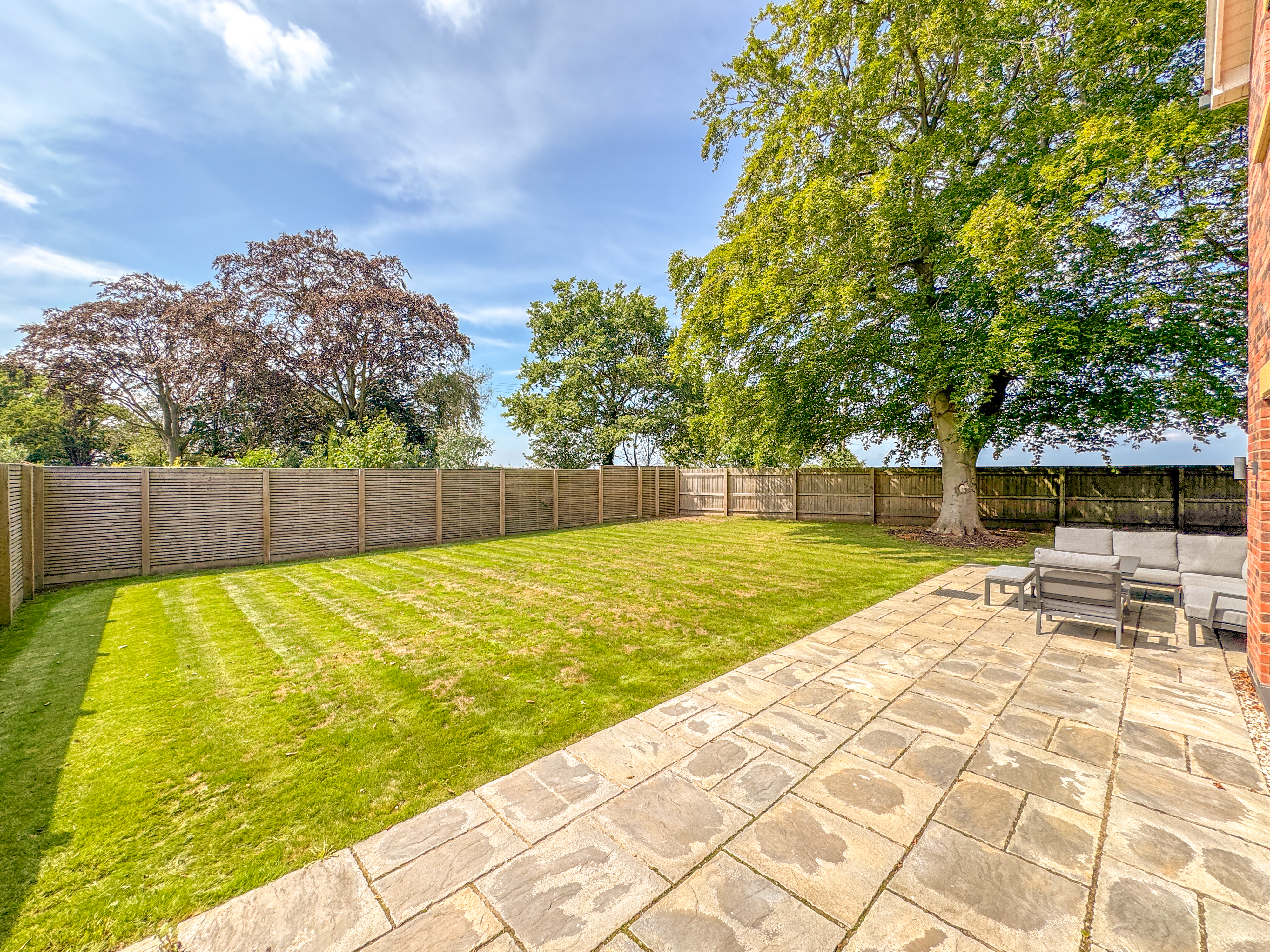 Outside, the home is approached via a block-paved driveway providing ample parking, leading to a generous double garage with remote-operated sectional door, power, lighting, and an electric car charging point. The west-facing rear garden wraps around two sides of the property, providing a beautifully private and sunny space laid mainly to lawn with a paved terrace directly accessed from the living area, ideal for al fresco dining and entertaining.