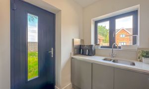 Carters Estate Agents are proud to offer for sale this exceptional, individually designed detached home, built in 2021 by award-winning developers Springbourne Homes, and set within the prestigious and highly sought-after Hornsey Rise development on the edge of Wellsborough. This beautifully crafted residence is part of an exclusive collection of luxury homes, and No. 2 stands out with its striking stone façade, handcrafted oak-framed windows, and double garage, all set behind a generous frontage on a private access road.