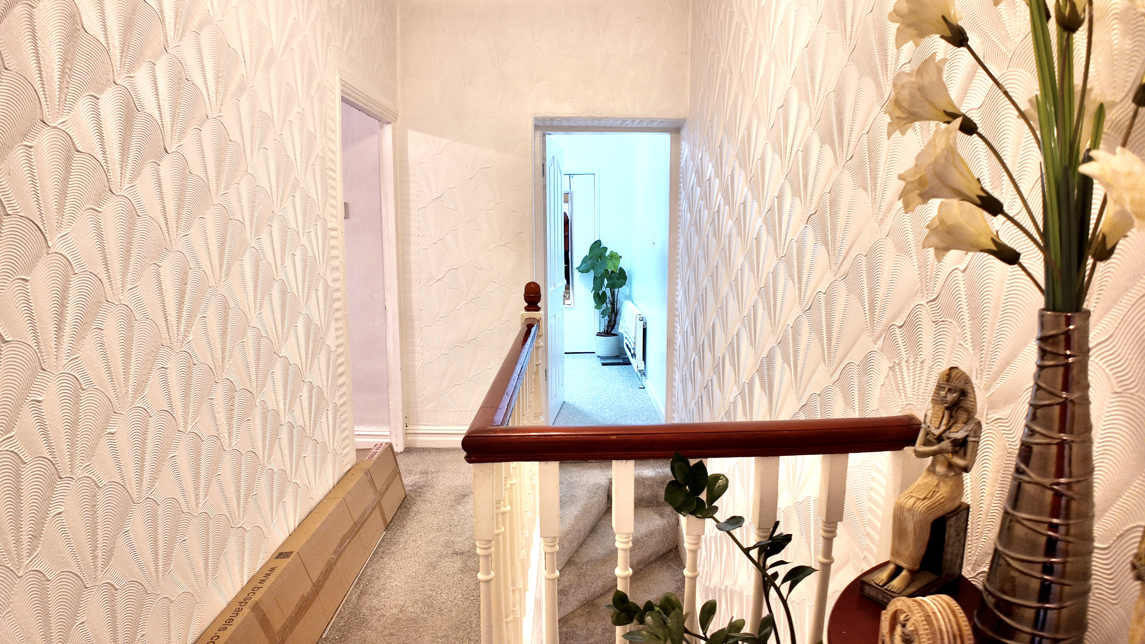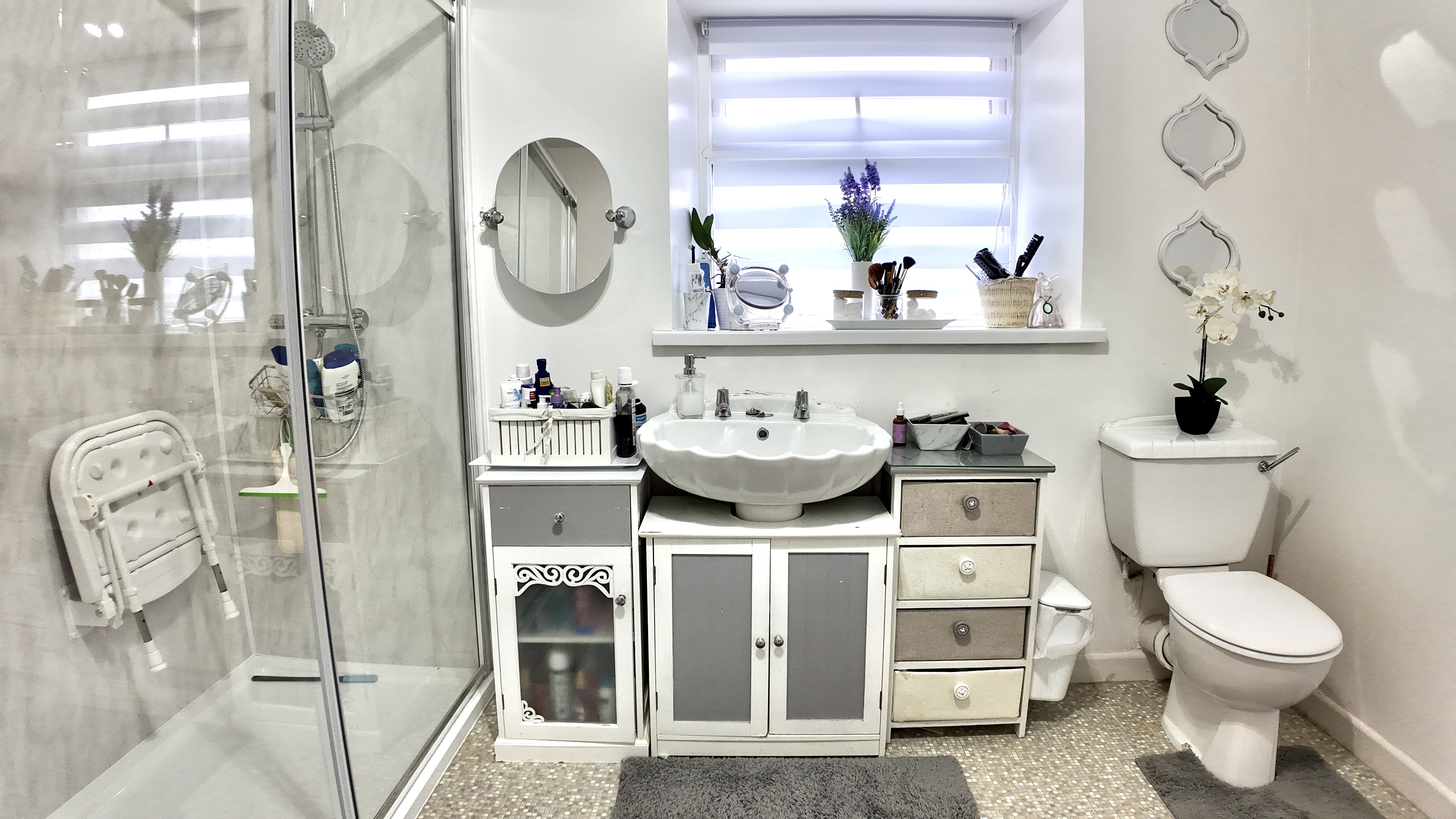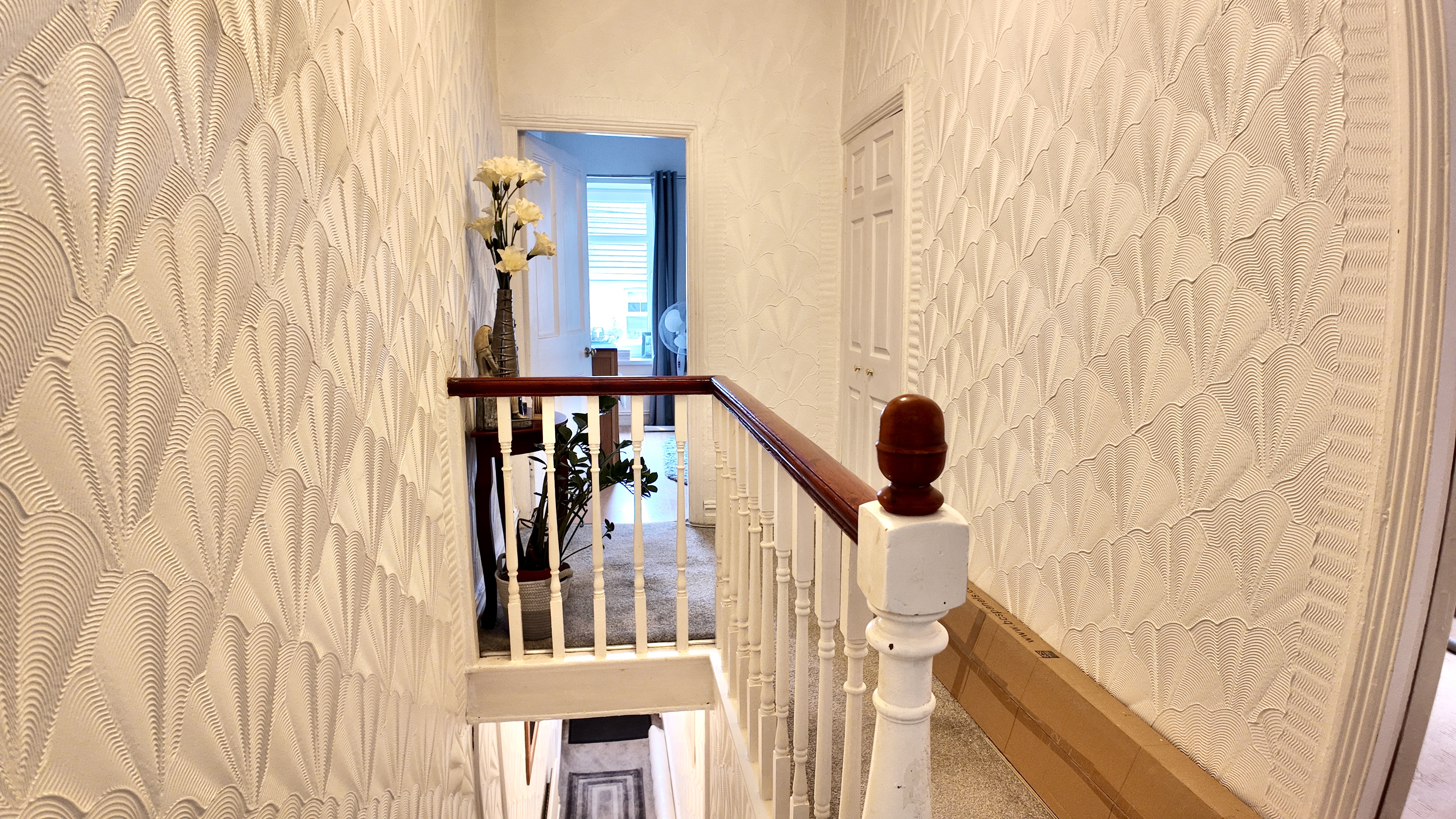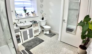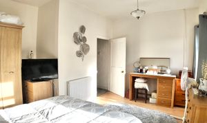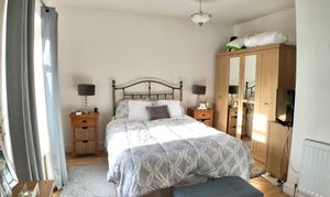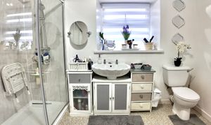 Upstairs, the accommodation includes a spacious shower room with a useful storage cupboard, along with two generous bedrooms. The master bedroom is positioned to the front, while a double bedroom sits to the rear, both offering comfortable living space.
