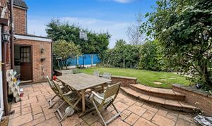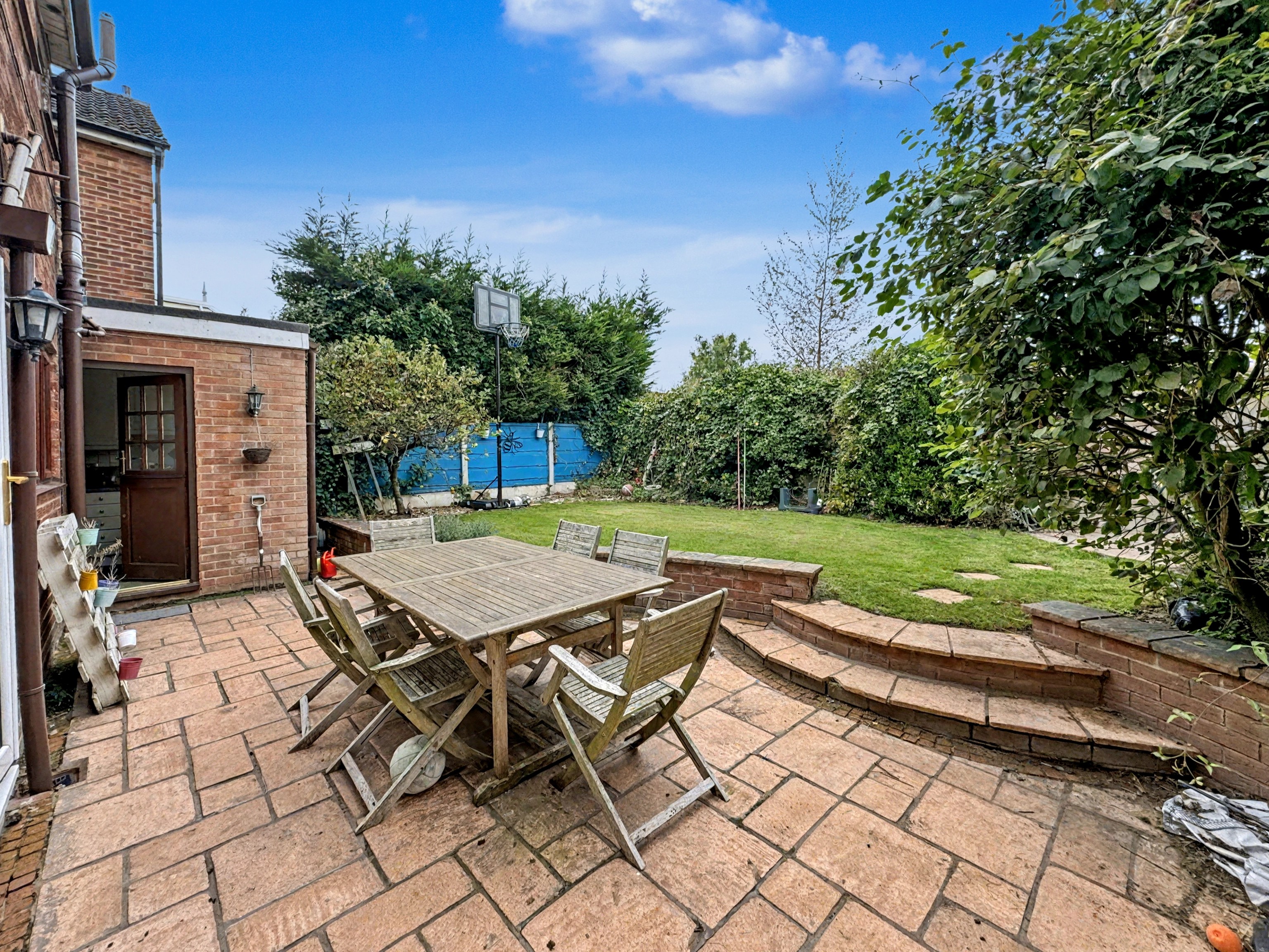 Outside, the property features a great-sized rear garden with a paved patio area and a well-maintained lawn—perfect for outdoor dining and family gatherings. Completing the home is a garage and driveway parking, offering ample space for multiple vehicles.