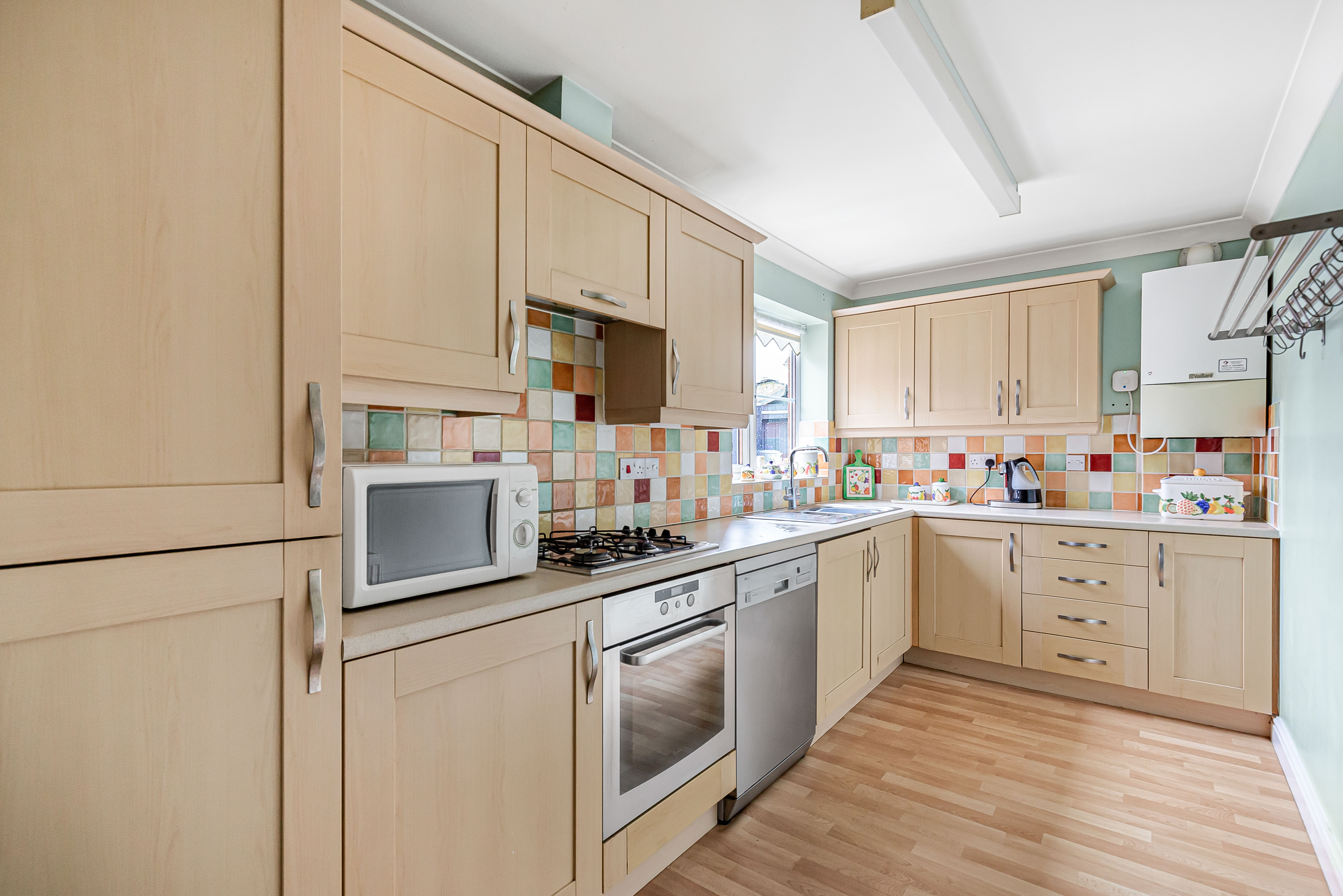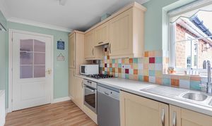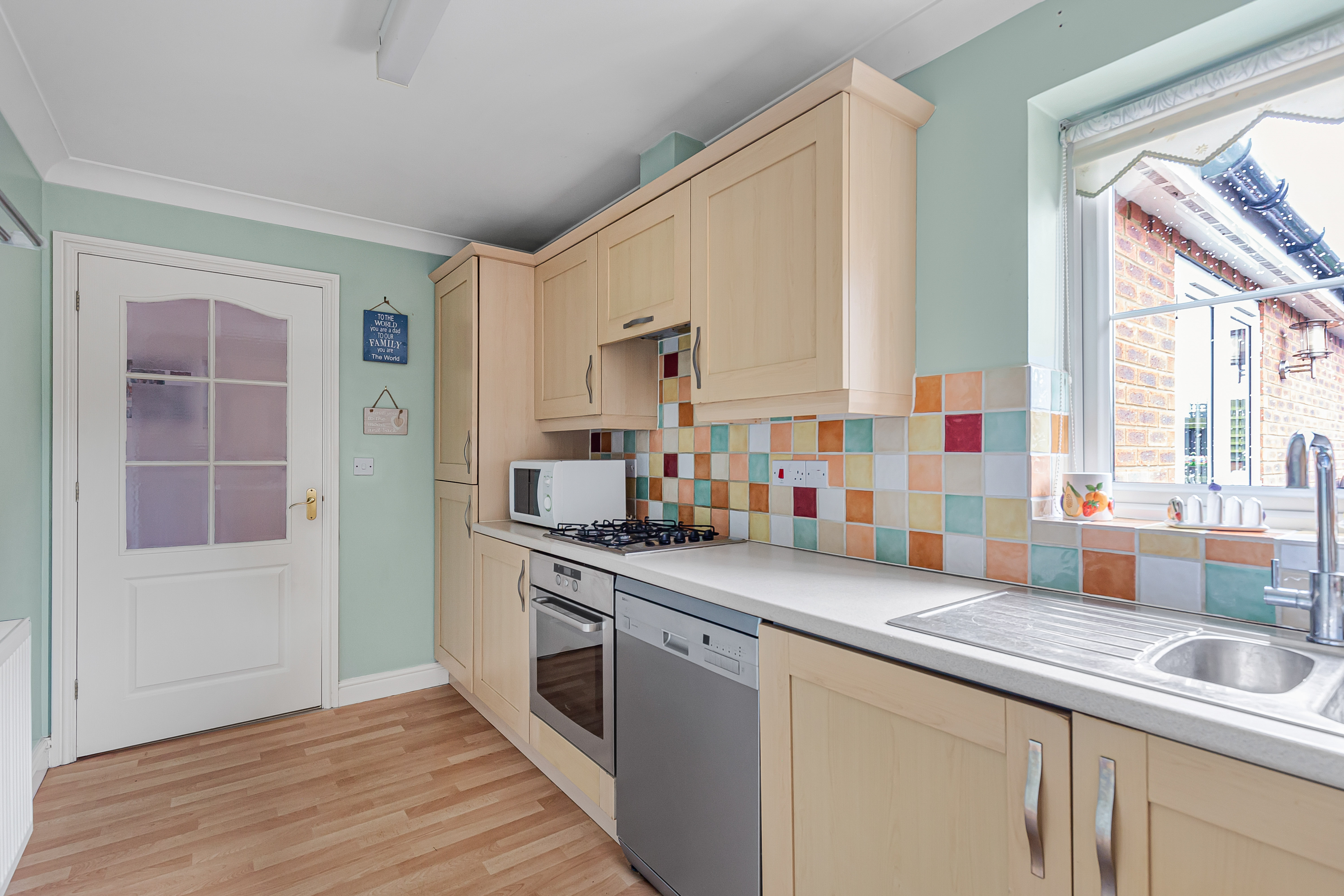 The well-proportioned accommodation begins with a welcoming hallway offering space for coats and shoes. There are two generous double bedrooms, the principal benefitting from built-in wardrobes. The kitchen enjoys delightful views over the rear garden and is fitted with a range of appliances, along with ample cupboard and worktop space.