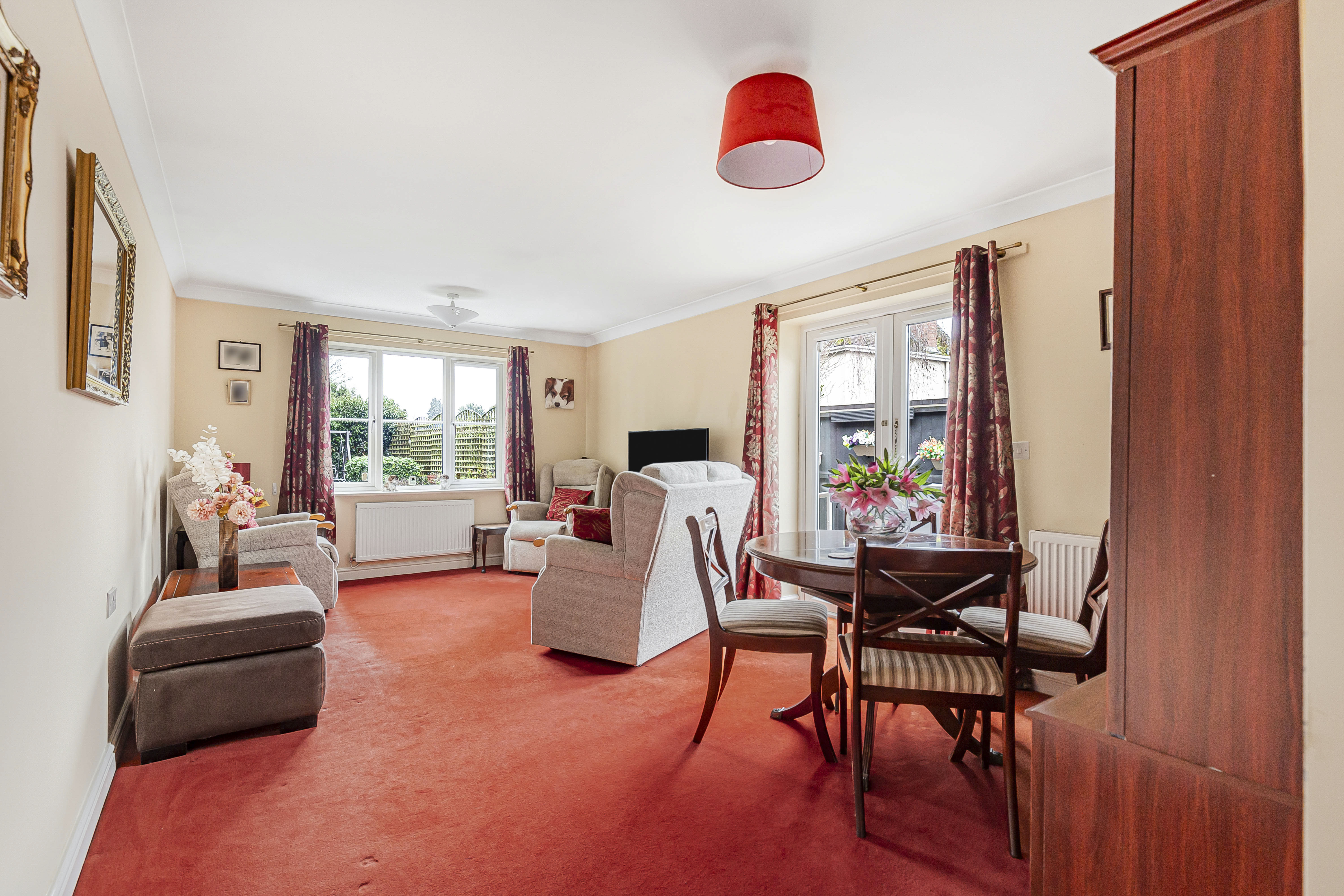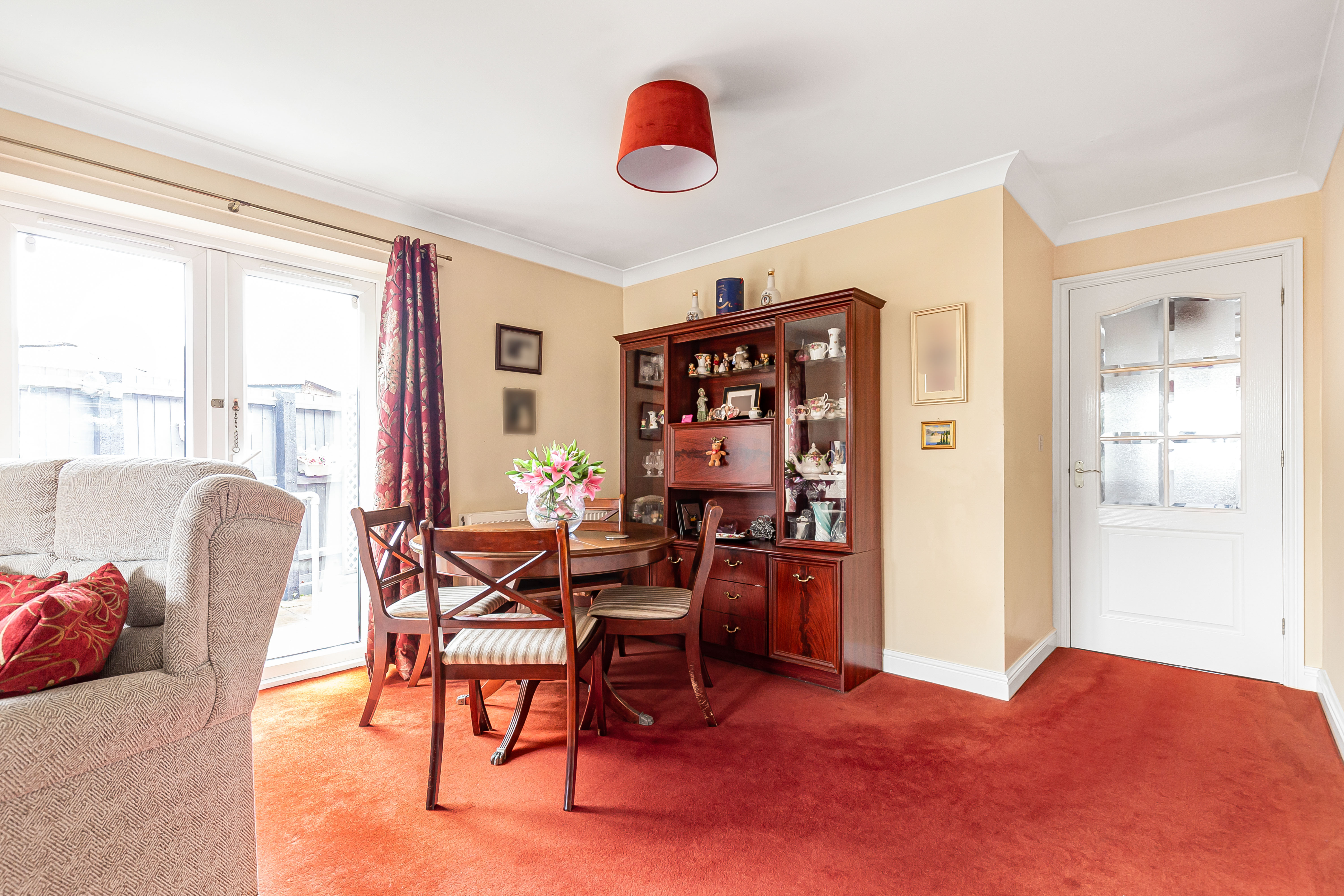 Enjoying sunny east facing views over the garden with enough space for a dining table and double doors leading out to the side.