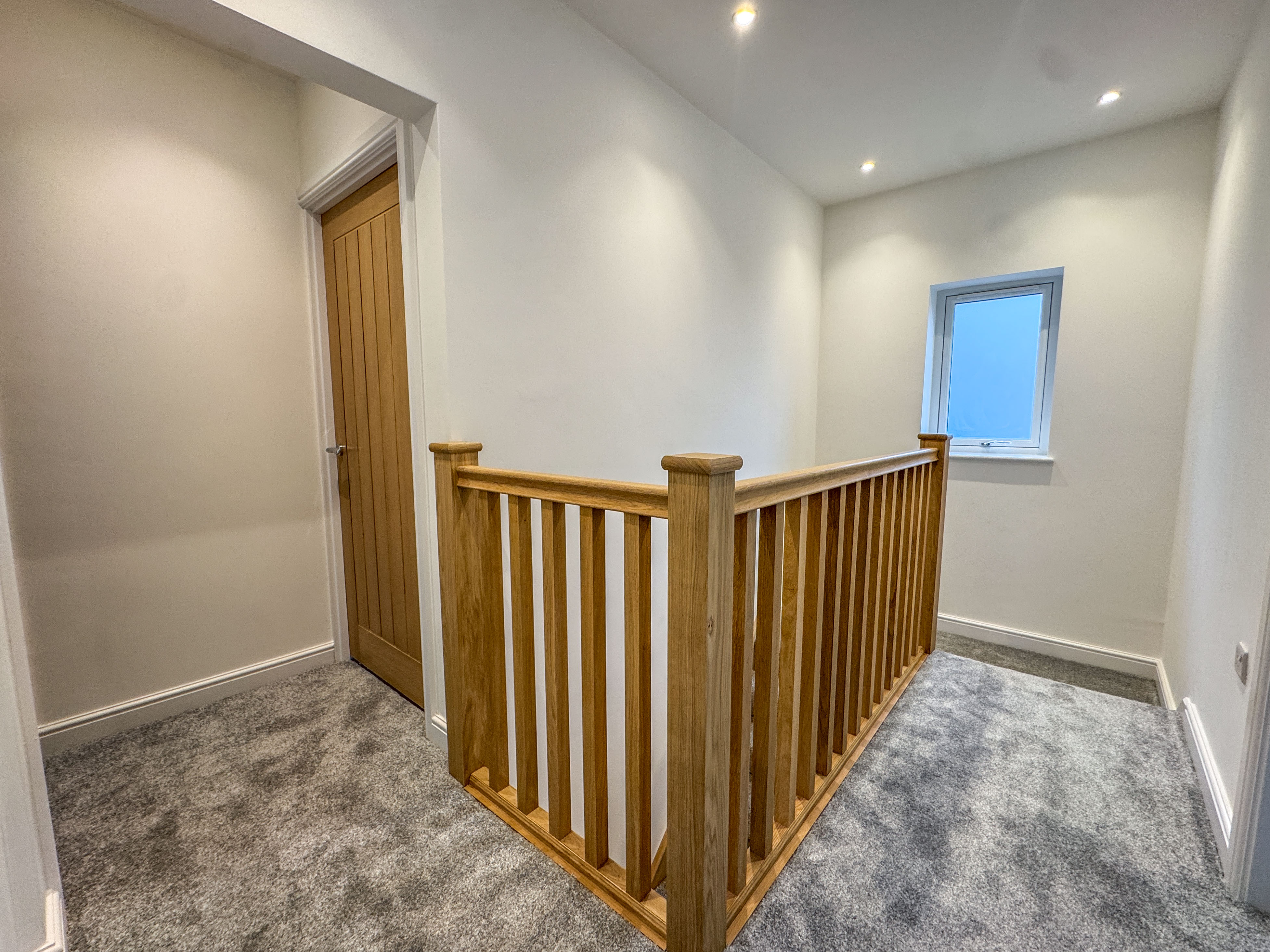 Upstairs, four well-proportioned and fully carpeted bedrooms provide excellent accommodation for growing families. The principal bedroom enjoys its own luxury en-suite, fitted with sleek, contemporary tiling and a mains-fed walk-in shower. The main family bathroom is equally refined, with a quality white suite and separate mains-fed waterfall shower for added indulgence.