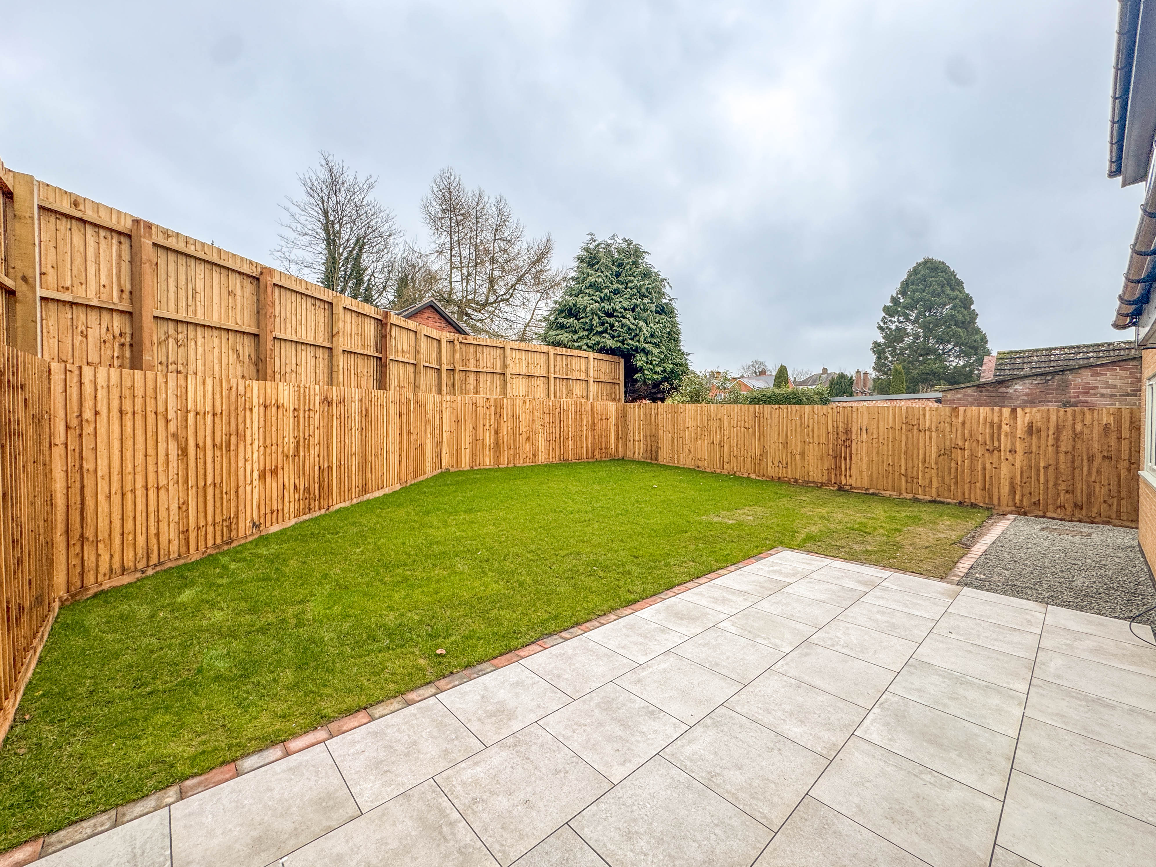 Externally, the home continues to impress. The block-paved driveway offers generous parking, and the exterior’s part-rendered finish adds to the property’s standout kerb appeal. The rear garden is fully turfed and enclosed, creating a private and secure outdoor space perfect for children, pets or simply relaxing at the end of the day.