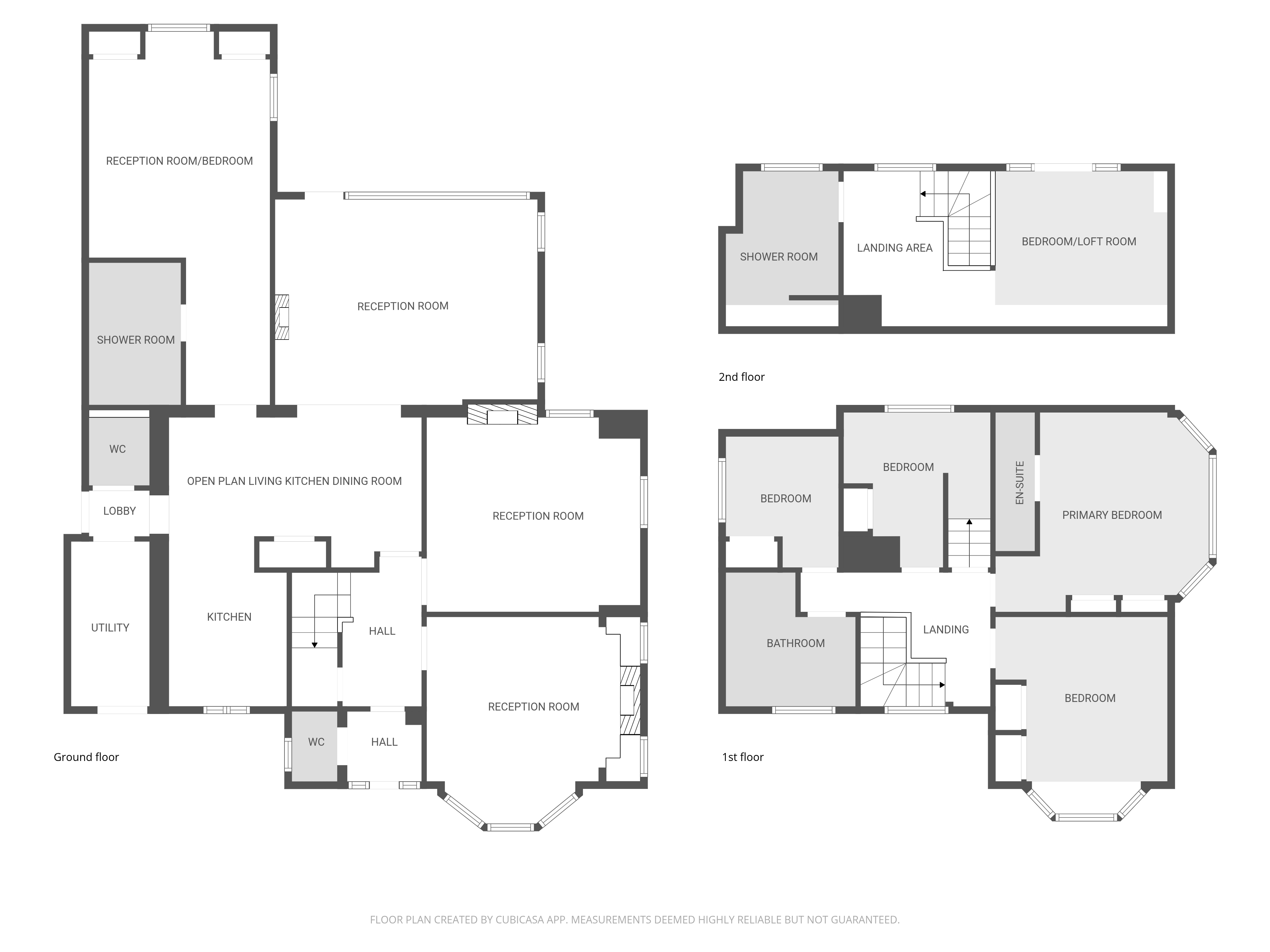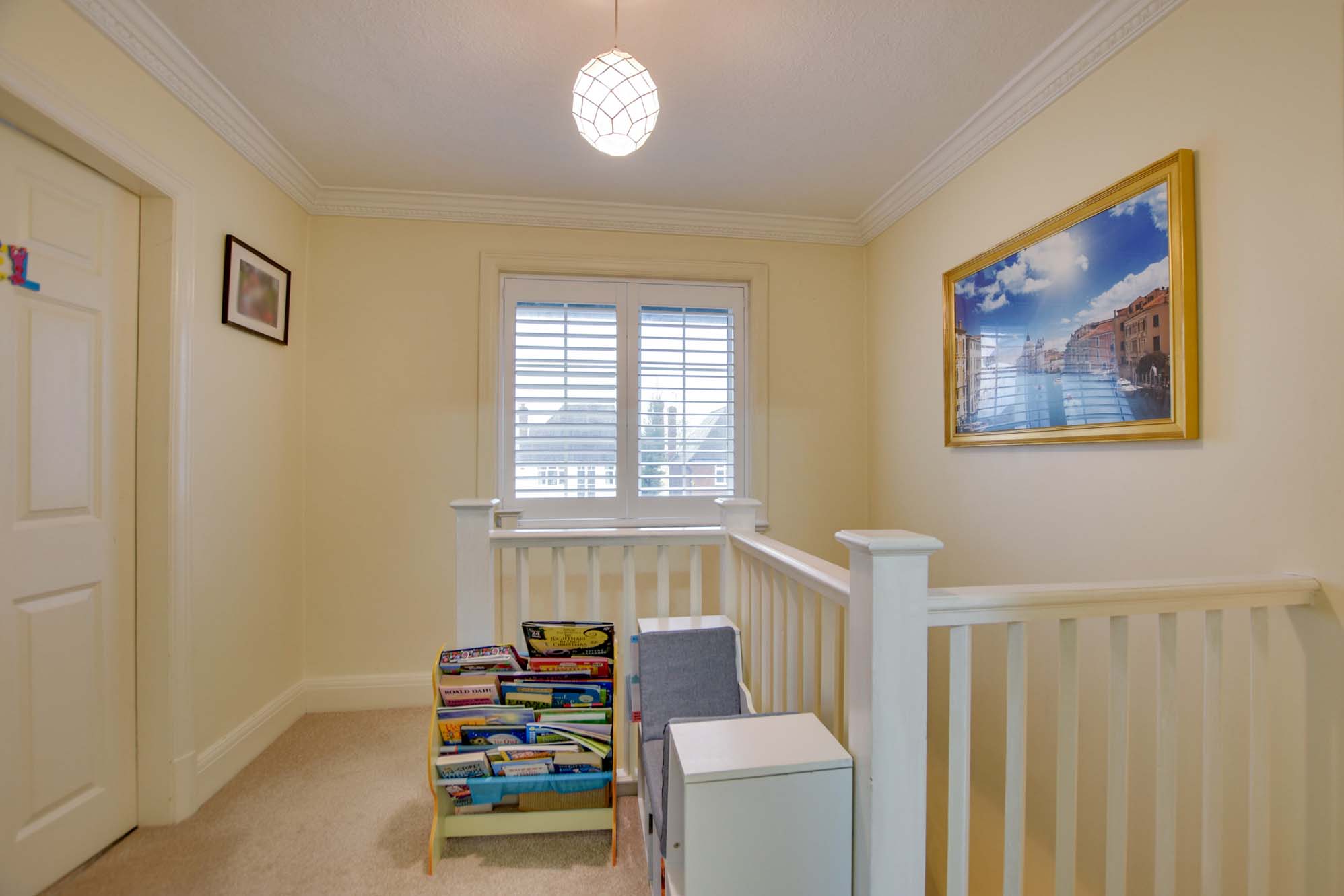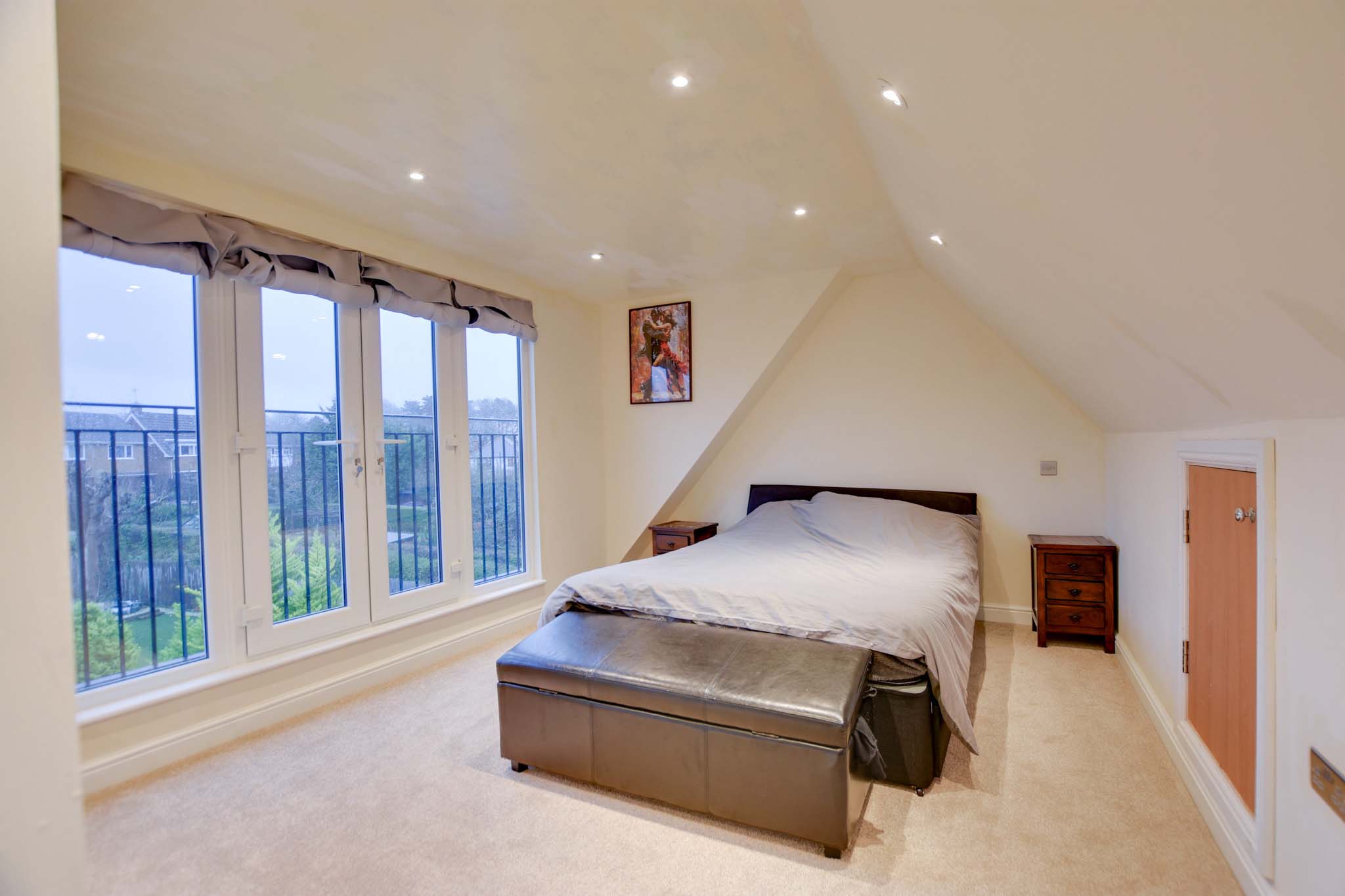 On the first floor are four bedrooms, including a generously sized bedroom with an ensuite shower room, alongside a family bathroom featuring a roll-top freestanding bath and separate shower enclosure. Stairs lead to the second floor, where the loft conversion provides a spacious main bedroom with a Juliet balcony and its own ensuite shower room.
