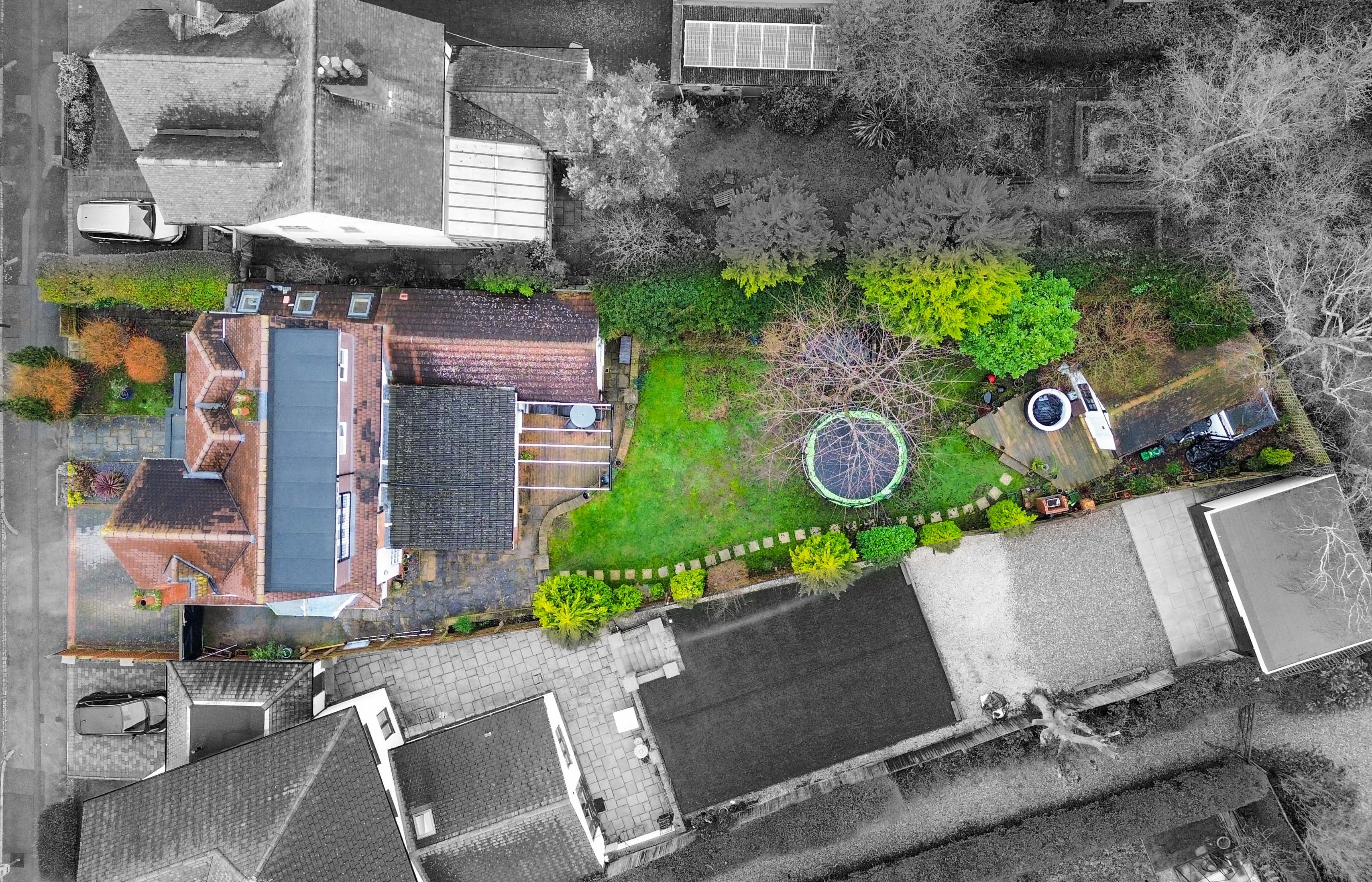 Outside, the rear garden offers a combination of patio, lawn, mature planting and a raised decked area leading to an outhouse with power, lighting and plumbing for a shower room and WC, suitable for gym or storage use. To the front is a lawned garden with mature shrubs, along with a block-paved driveway and carport providing off-road parking.
