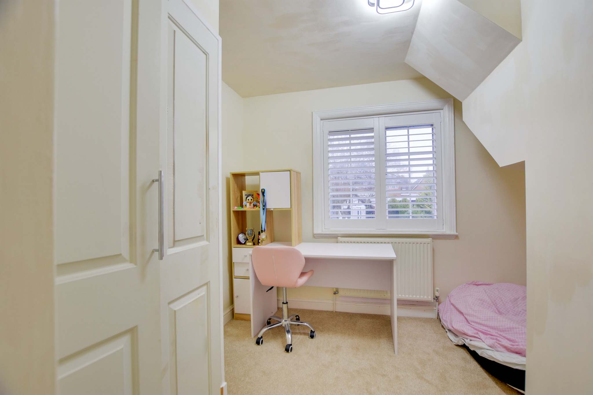 Features a double-glazed window to the front elevation with window shutters, coving to the ceiling, and stairs to the loft conversion.
